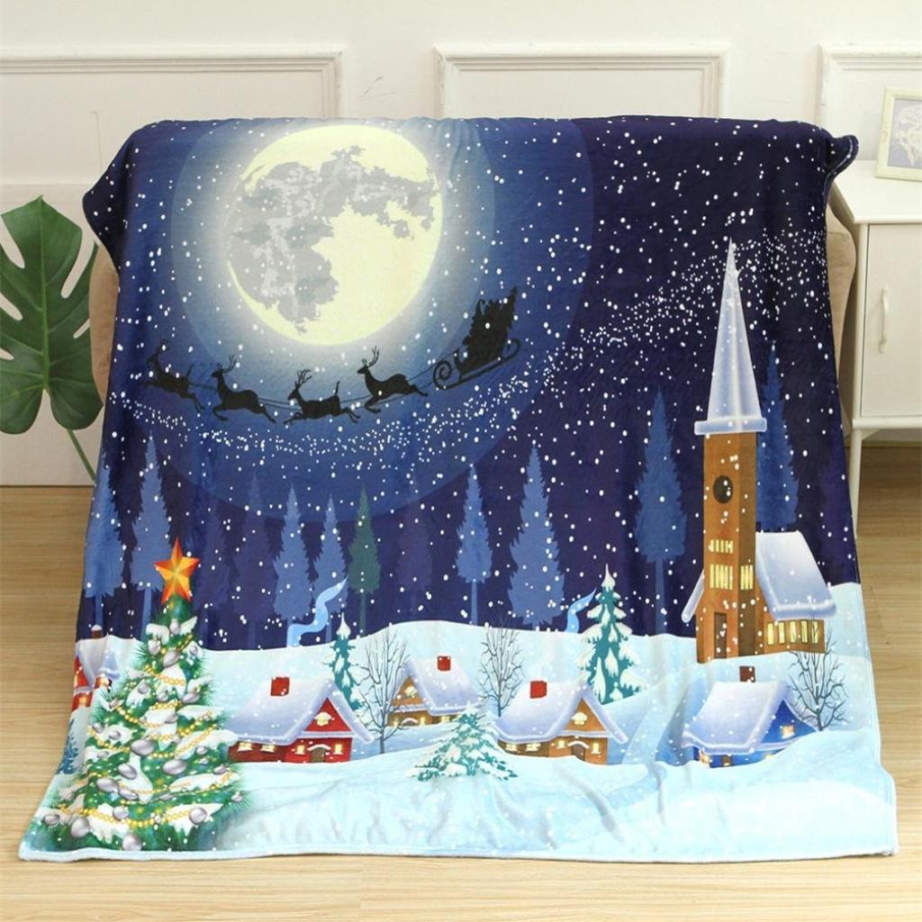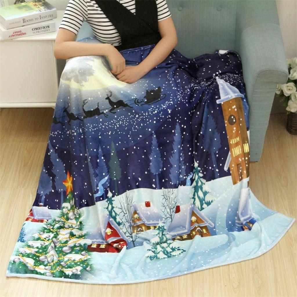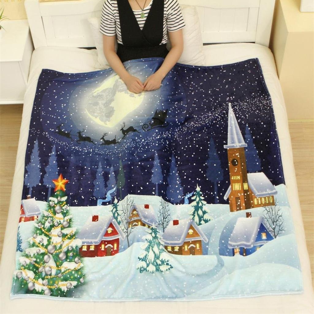 Christmas Blanket Double Fleece w/ Xmas Print Soft Warm Sofa Throw Blanket 4#