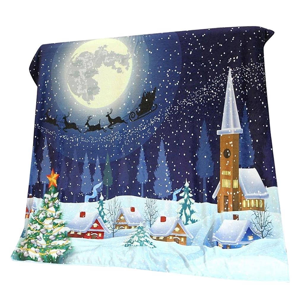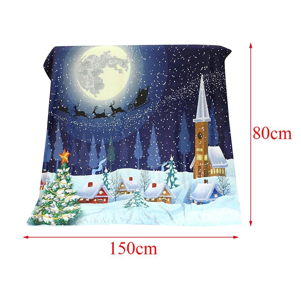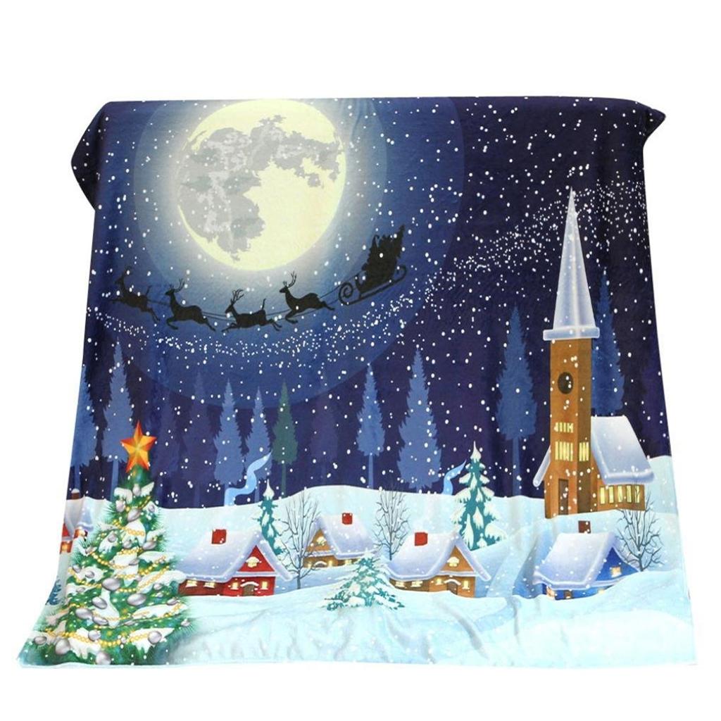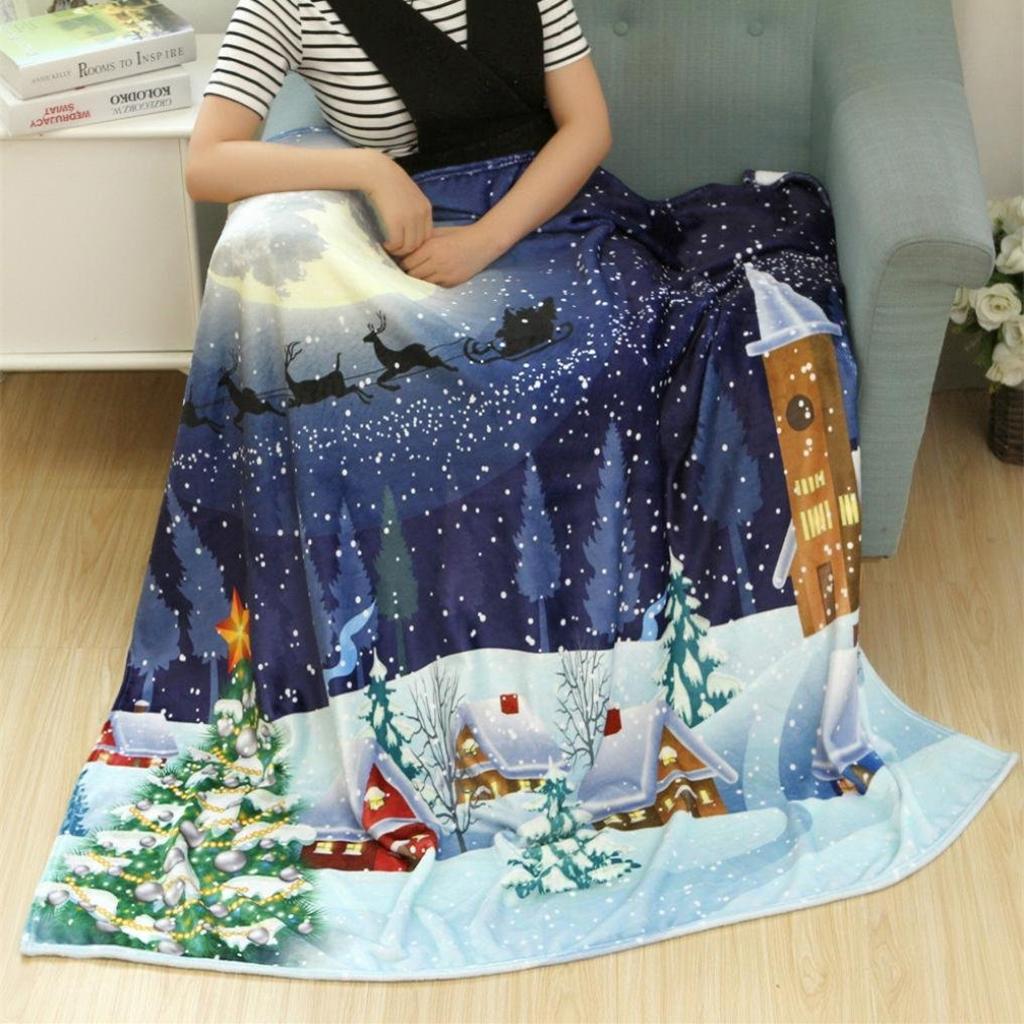 Christmas Blanket Double Fleece w/ Xmas Print Soft Warm Sofa Throw Blanket 4#