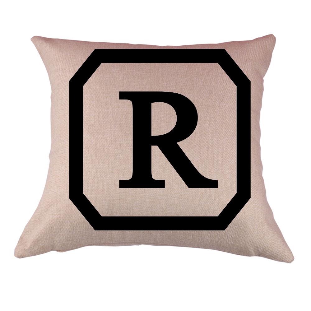 Cotton Linen Throw Pillow Case Cushion Cover Home Decor Initial Letter R