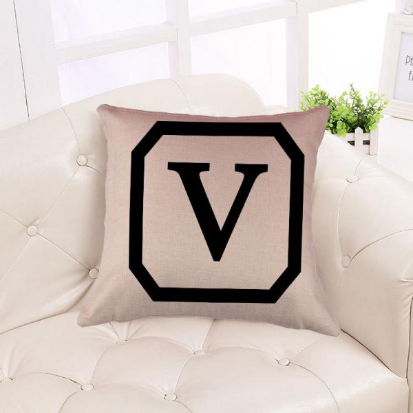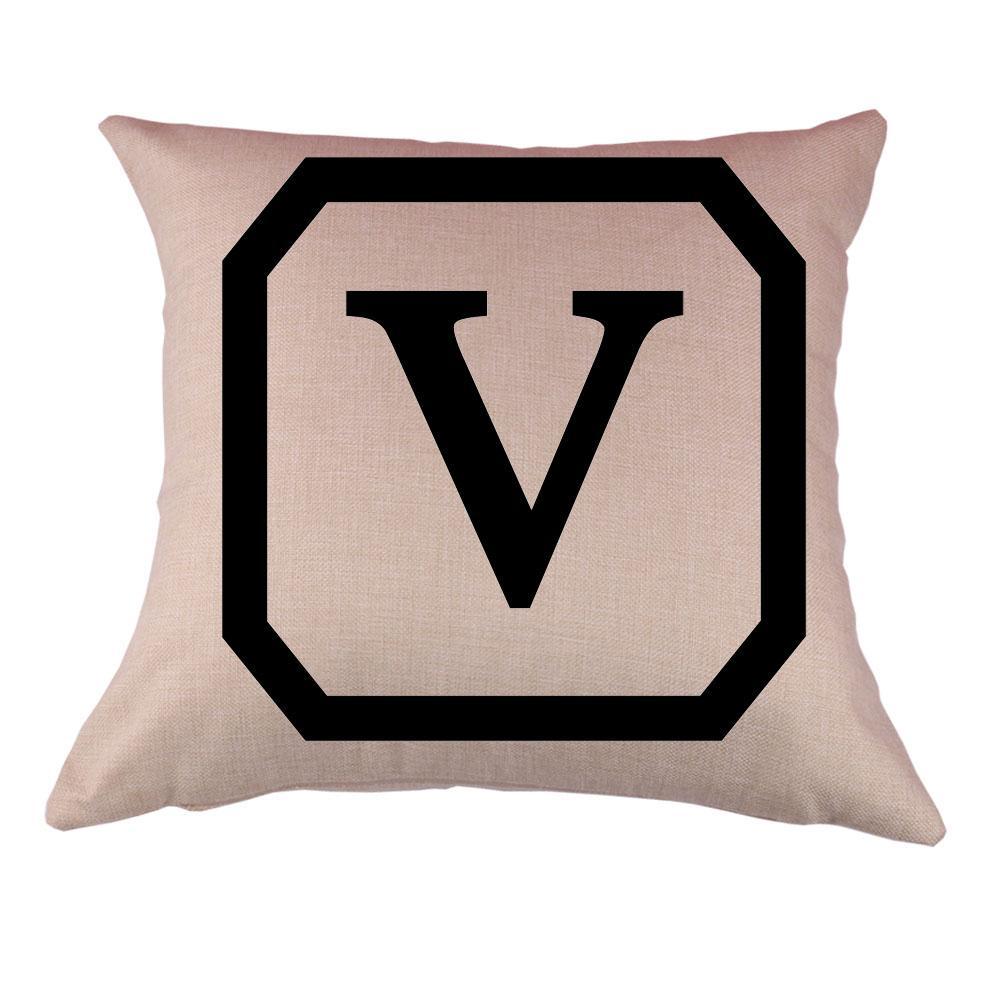 Cotton Linen Throw Pillow Case Cushion Cover Home Decor Initial Letter V