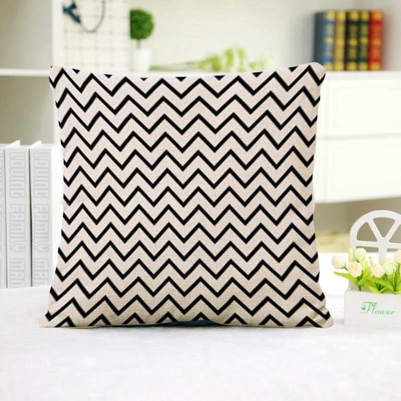 Home Office Sofa Decor Wave Stripe Linen Pillow Case Cushion Cover Black
