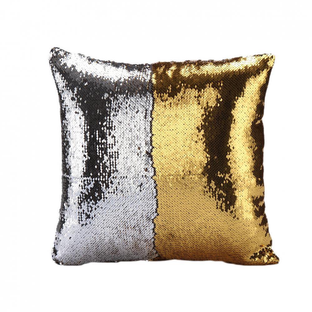 Reversible Suede Sequin Sofa Waist Cushion Cover Bed Pillow Case Slip Golden
