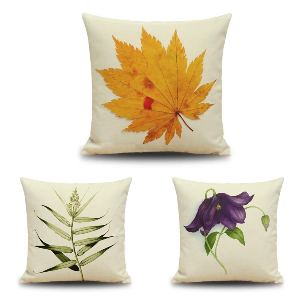 Square Waist Cushion Cover Cotton Linen Throw Pillow Case Slip Maple Leaf
