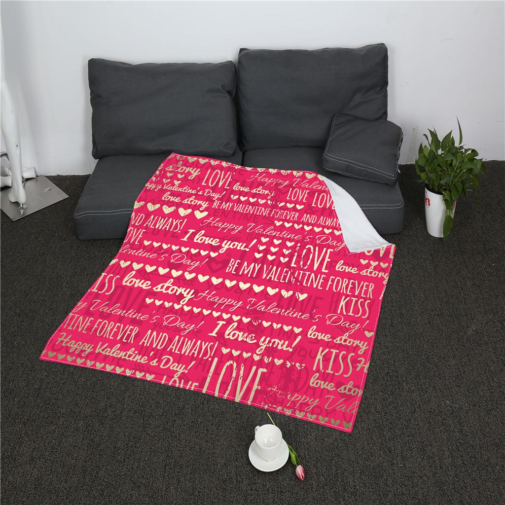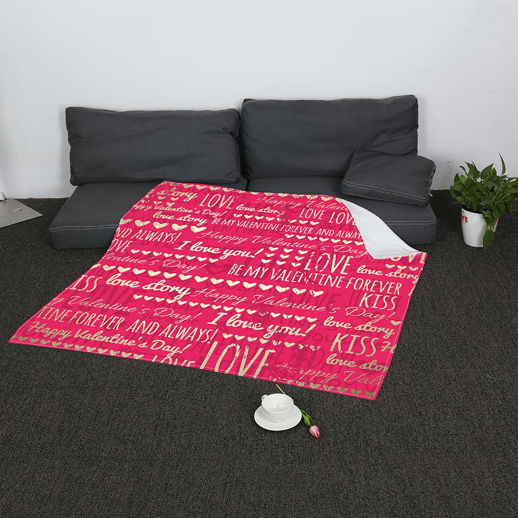 Valentine Themed Blanket Double Flannel Soft Warm Sofa Throw Blanket Pink LOVE