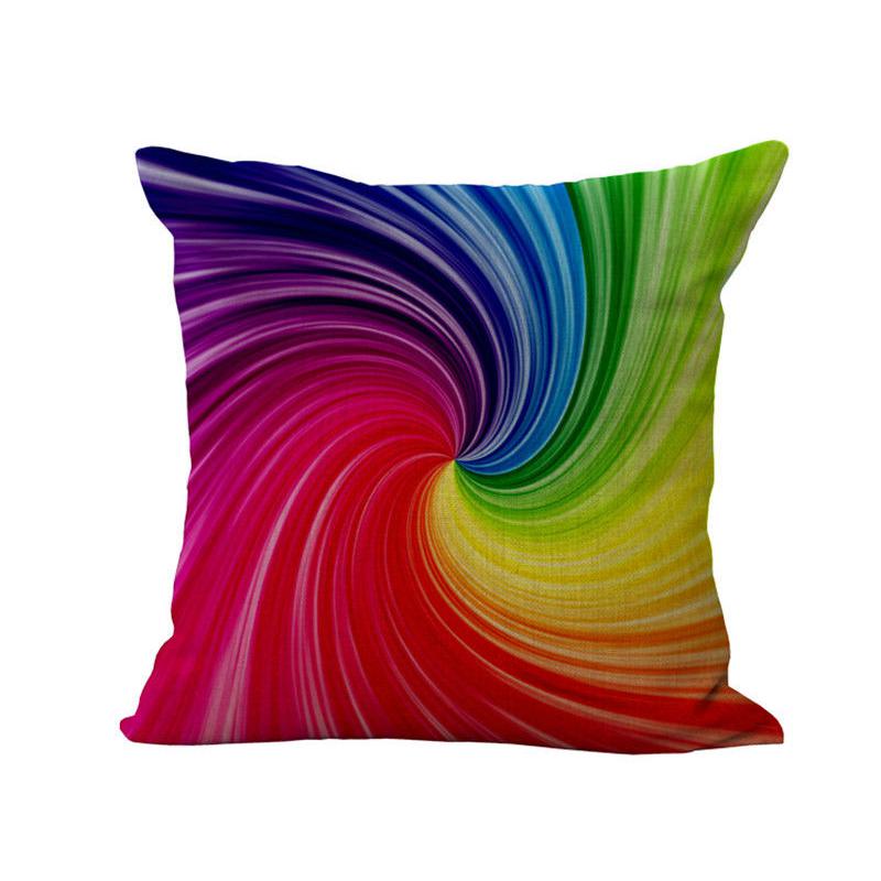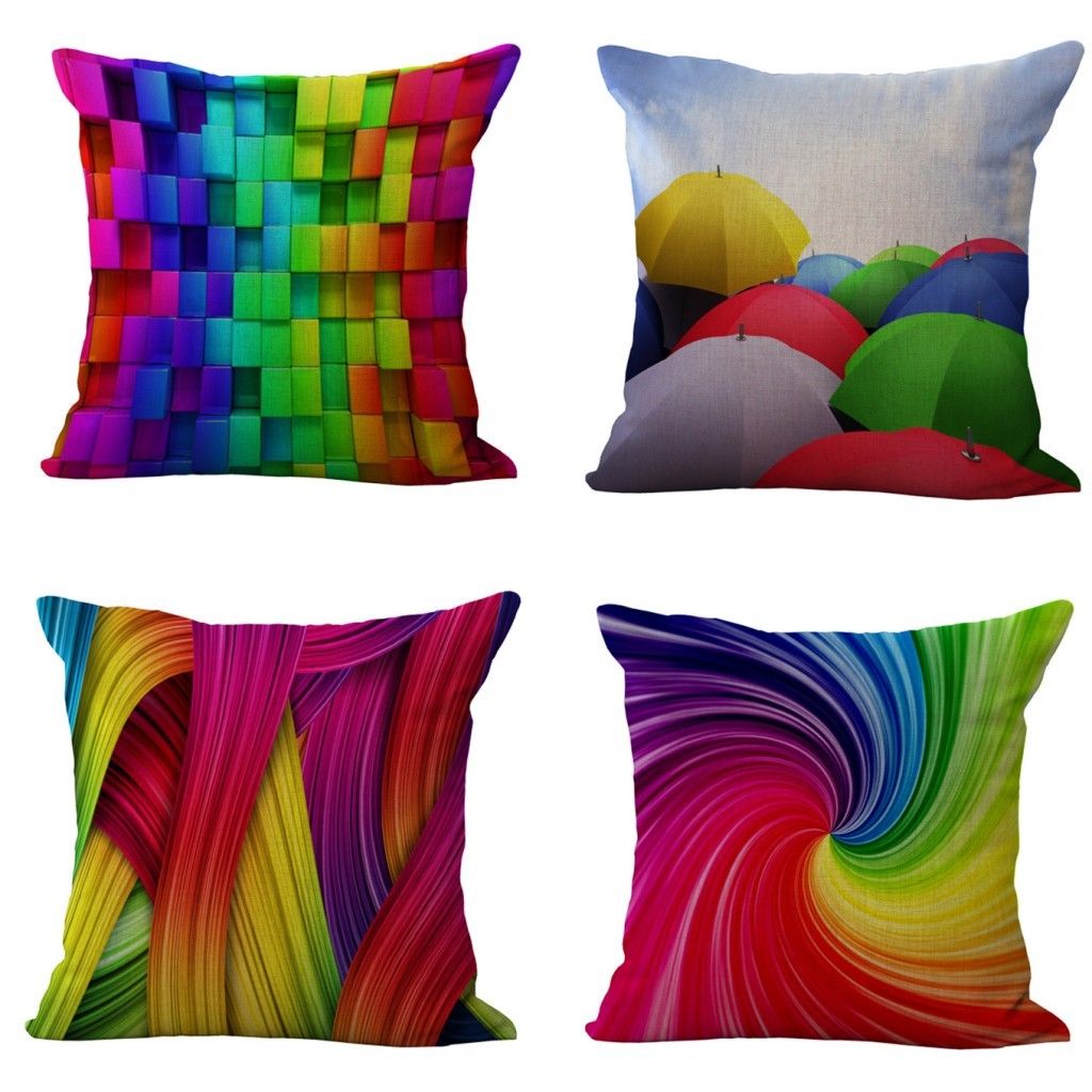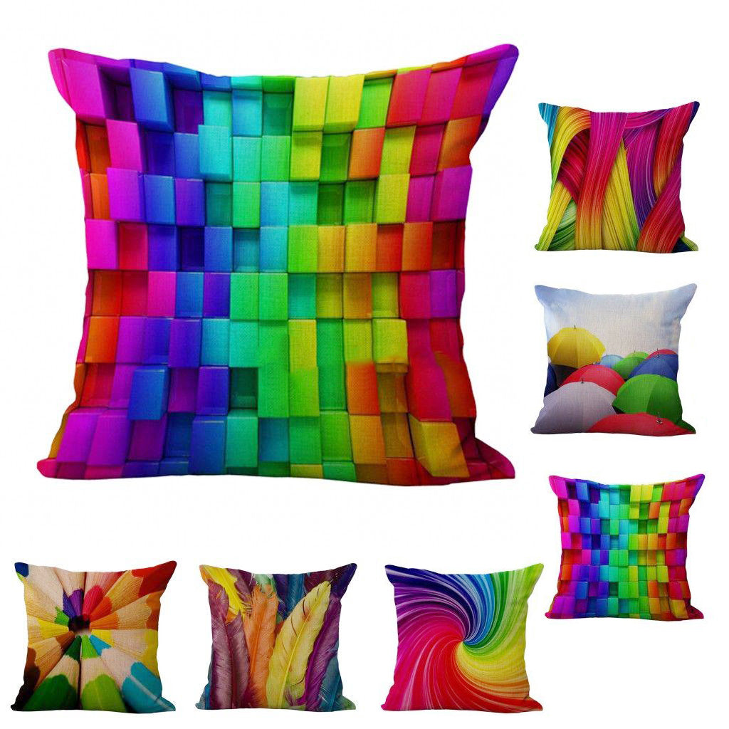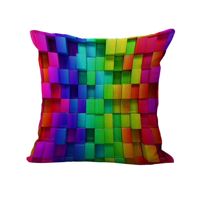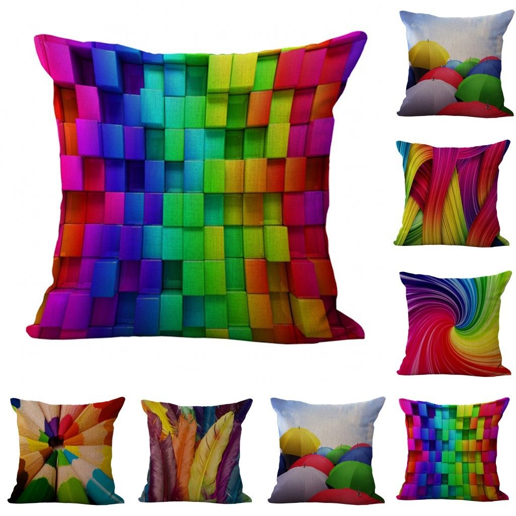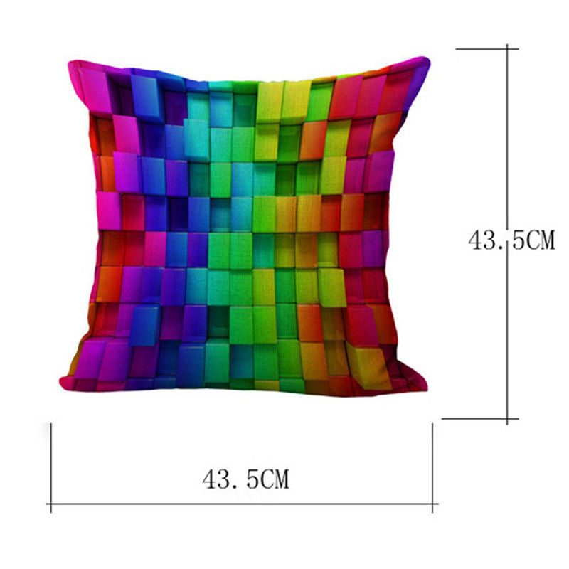 Woven Grid Print Cotton Linen Throw Pillow Case Rainbow Cushion Cover Decor