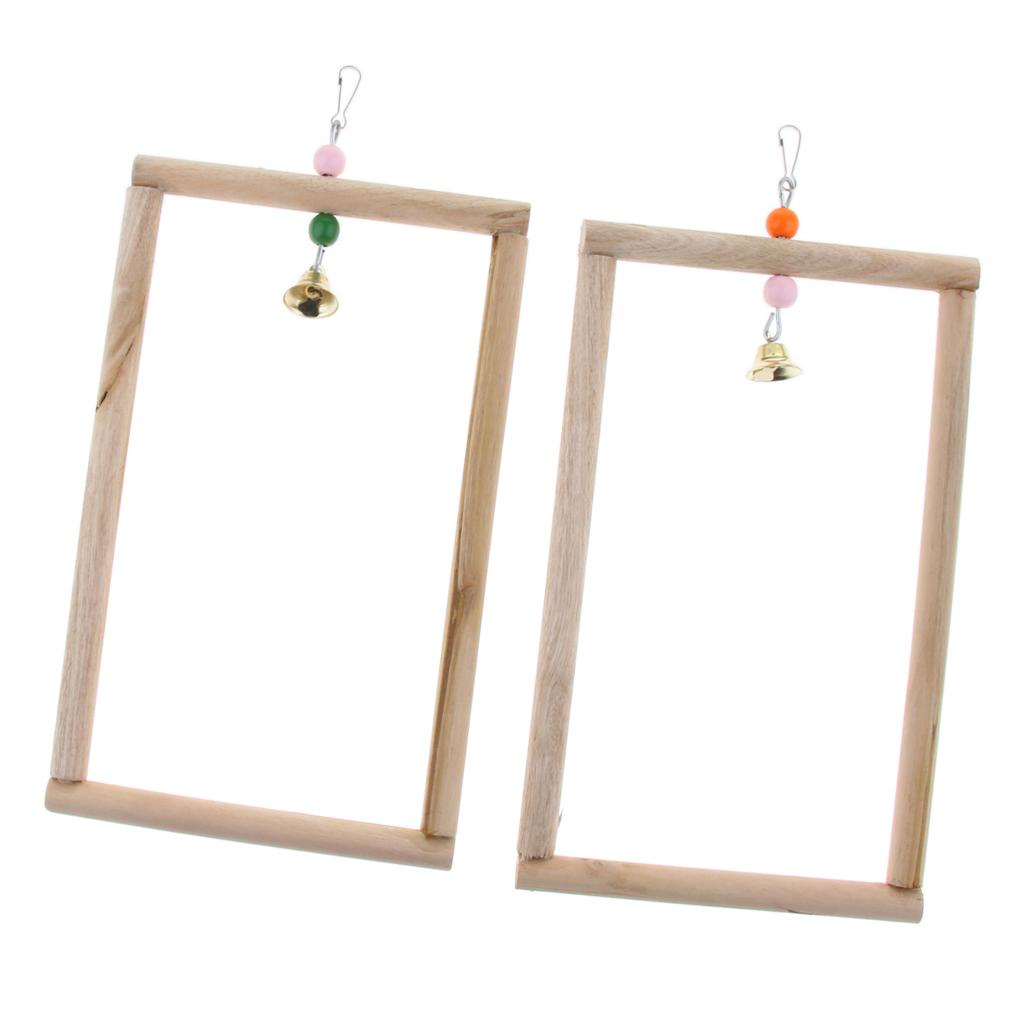 2x Pet Bird Cage Hanging Parrot Parakeet Stand Wood Swing Perch Ladder Smooth