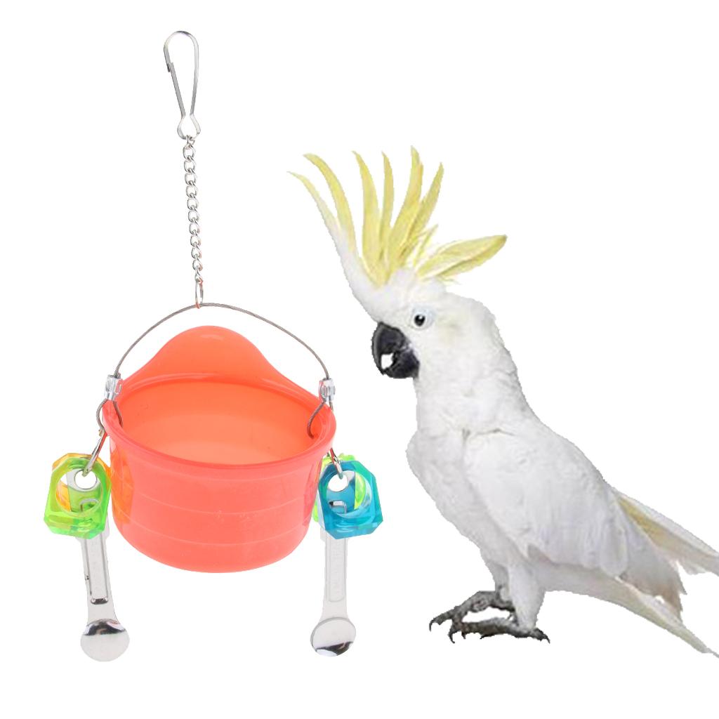 Bird can use the cup to eat food, also can play and swing on it.