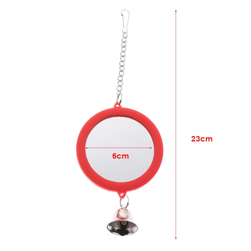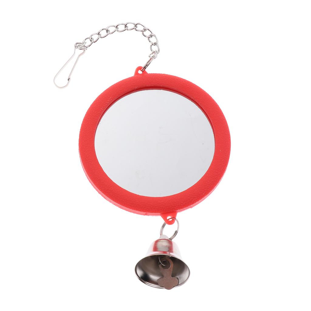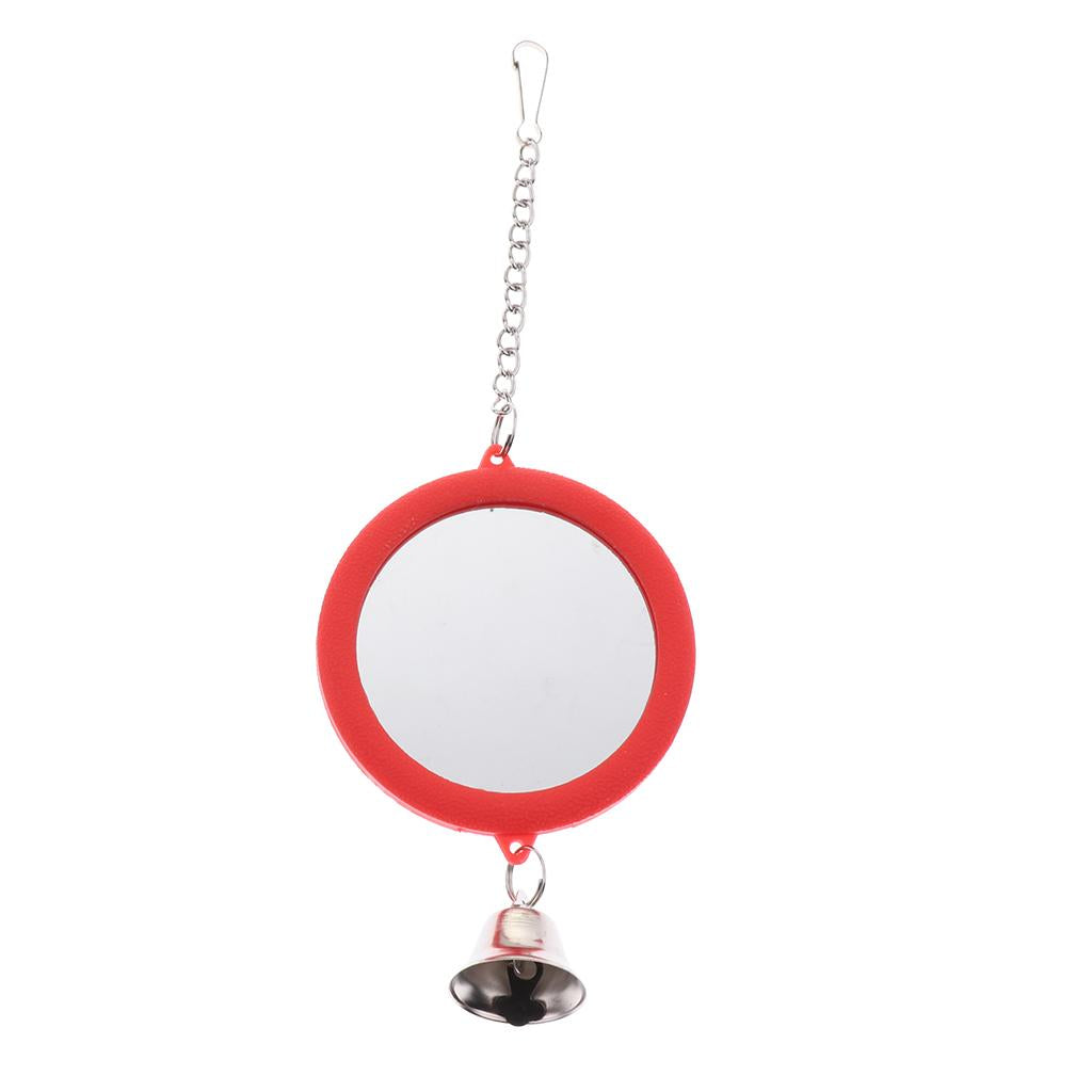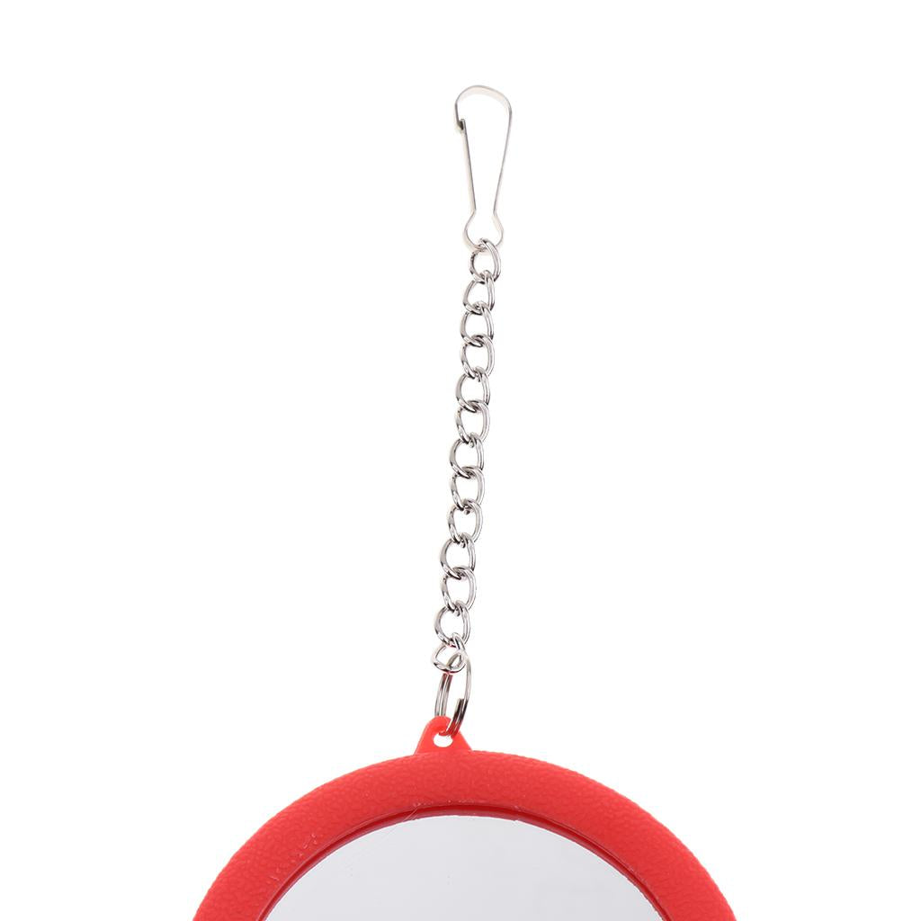 Parrot Mini Mirror Parrot Toy Hanging Chewing Cage Accessory Red Round
