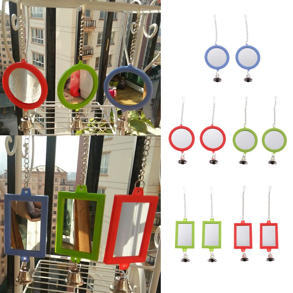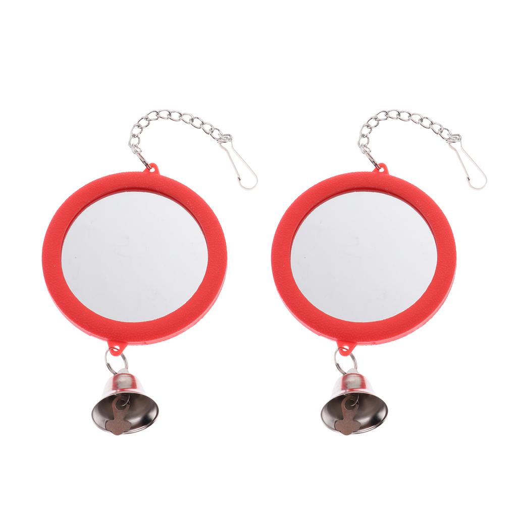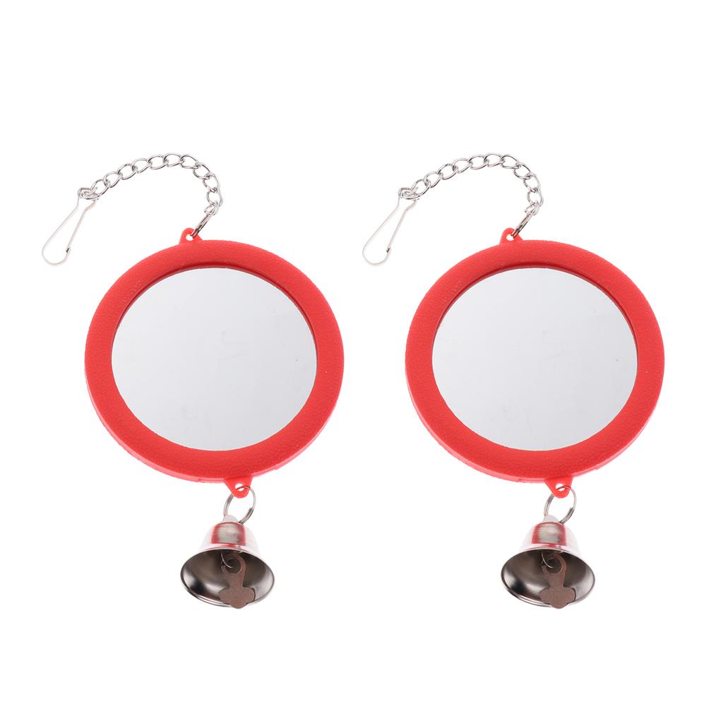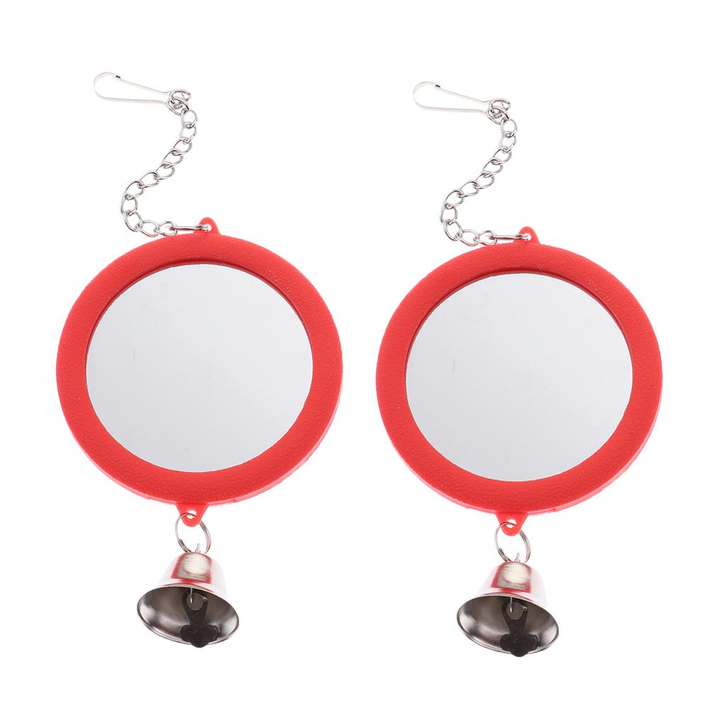 Parrot Mini Mirror Parrot Toy Hanging Chewing Cage Accessory Red Round