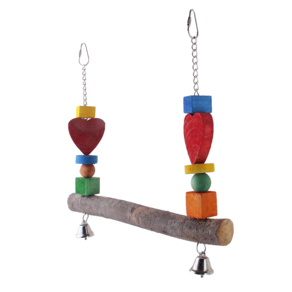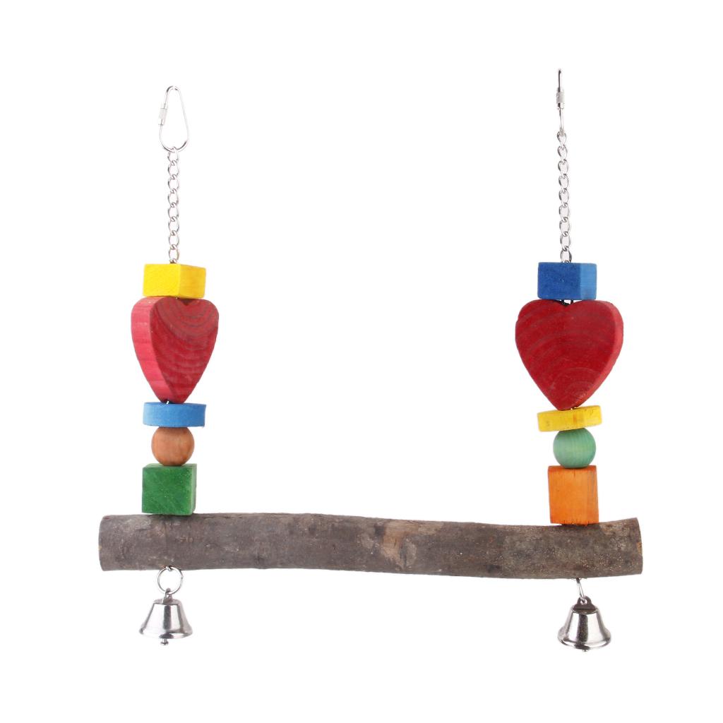 Wooden Bird Swing Bird Toy Cage Toys with Bells for Squirrels Parrots