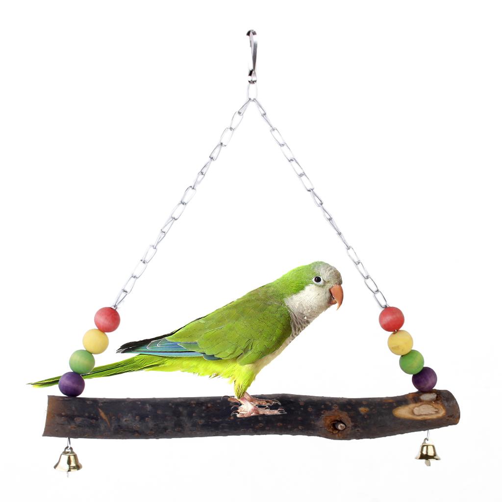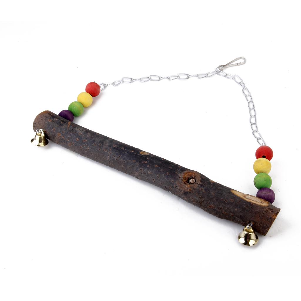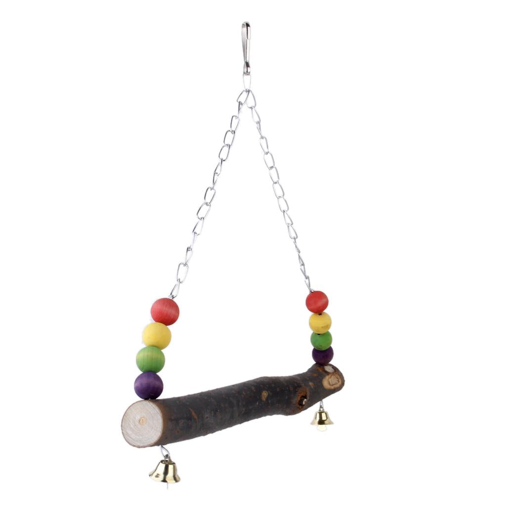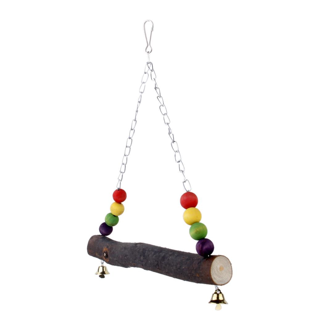 Wooden Bird Swing Bird Toy Cage Toys with Metal Bells for Squirrels Parrots