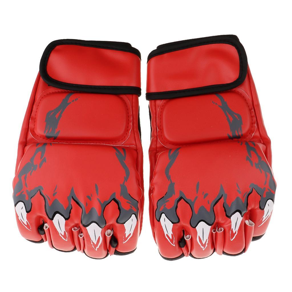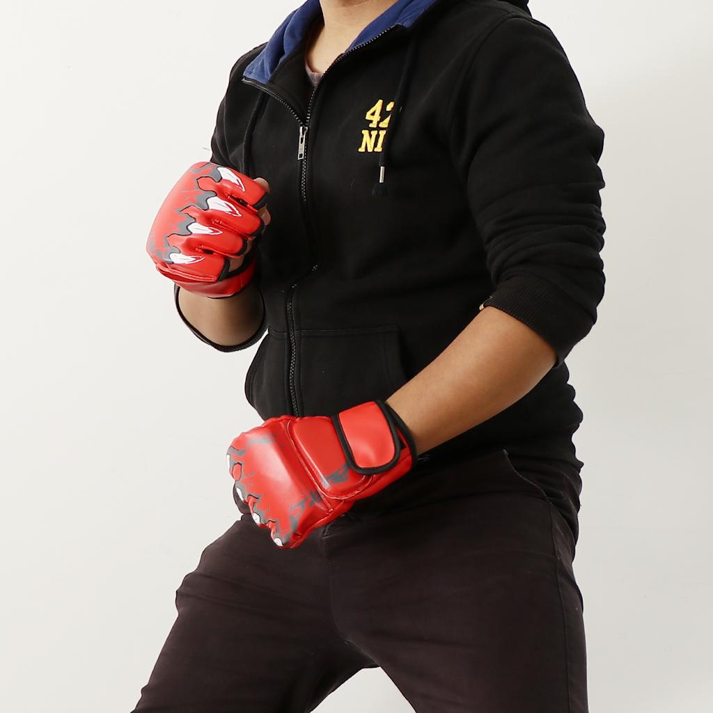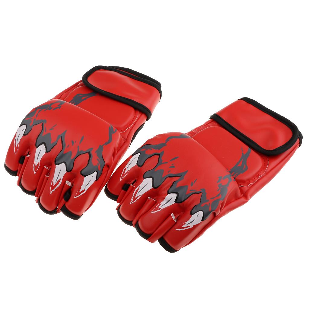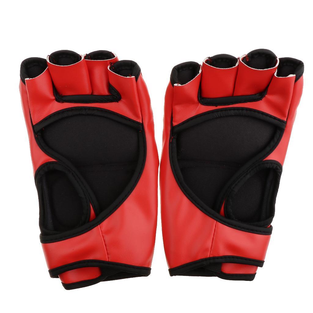 Women Men Pu Leather Half Finger Boxing Gloves Glove for MMA Red
