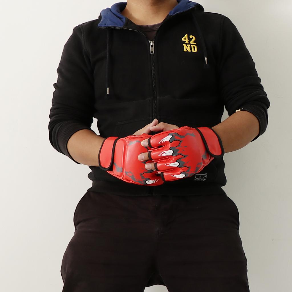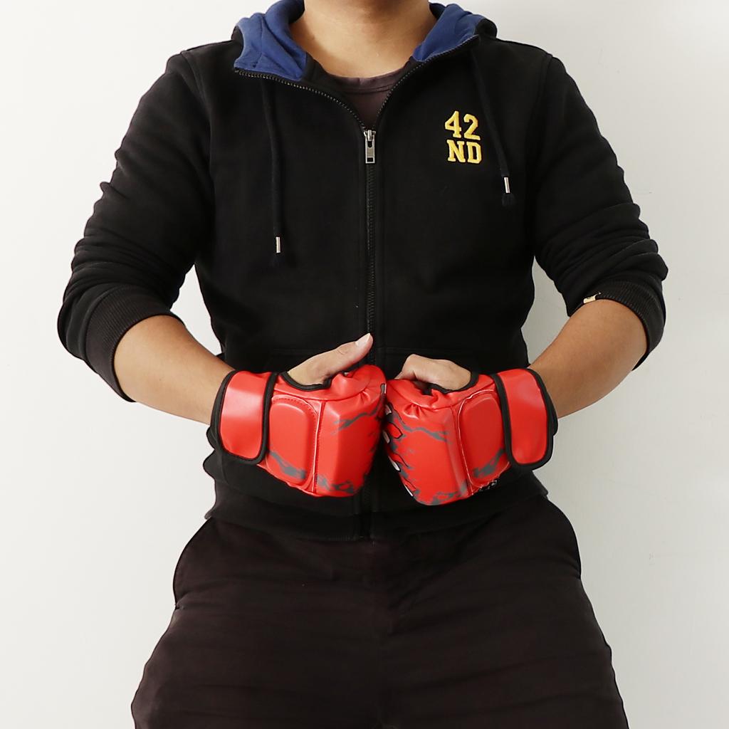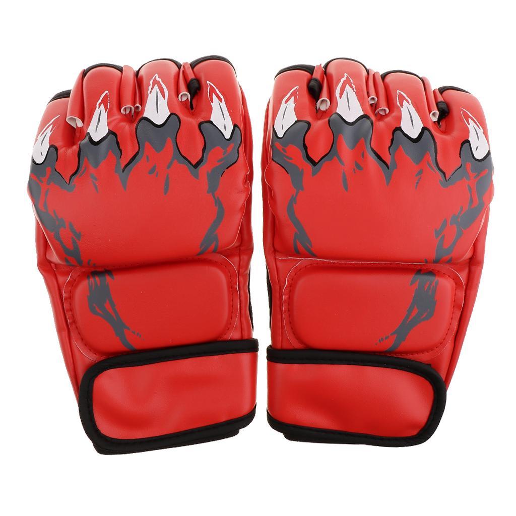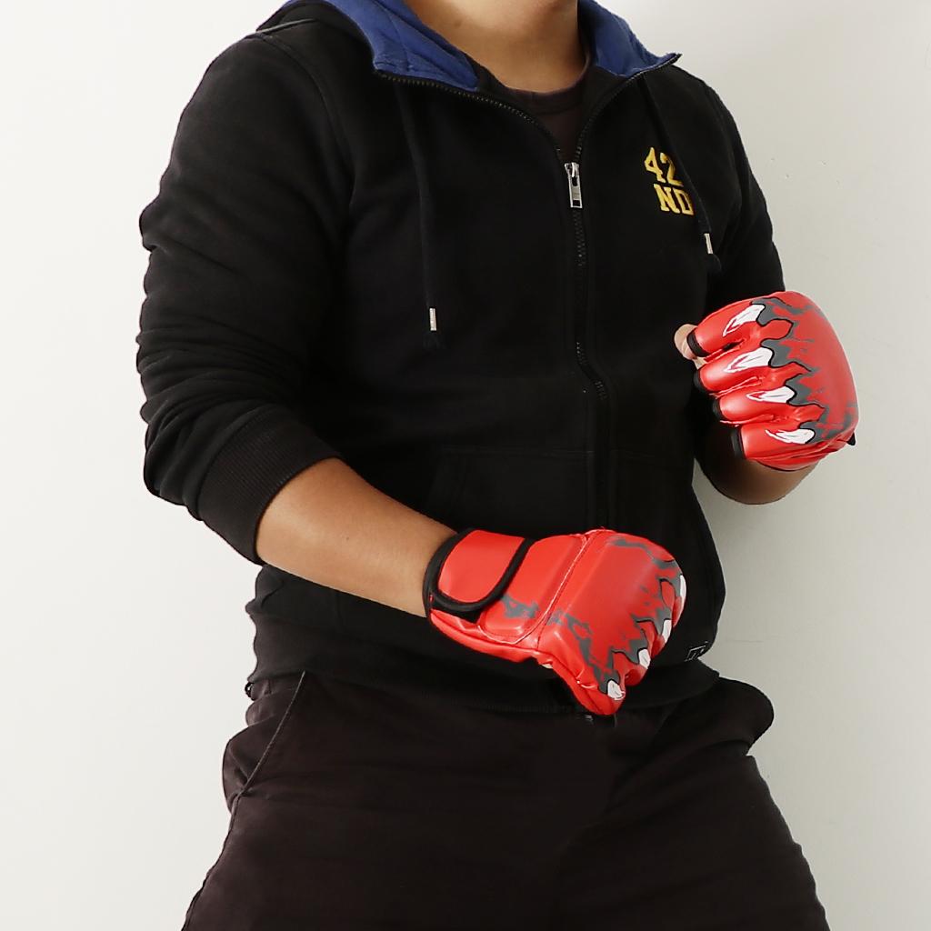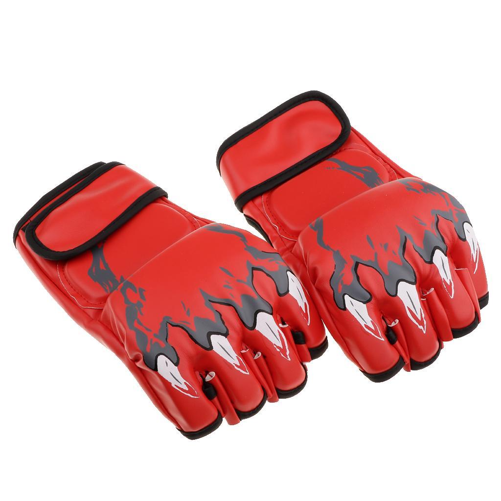 Women Men Pu Leather Half Finger Boxing Gloves Glove for MMA Red