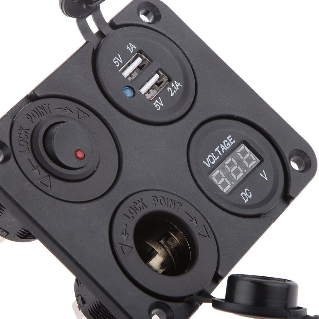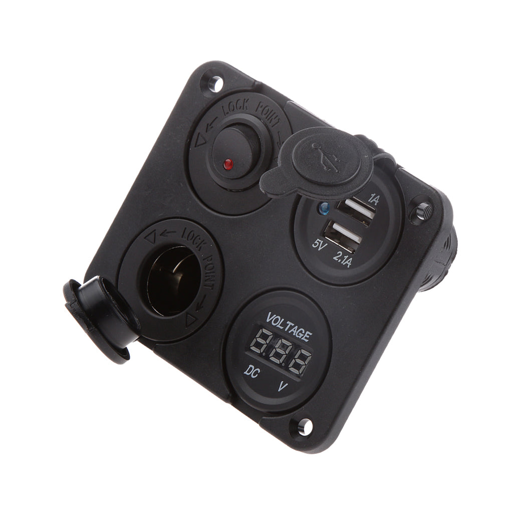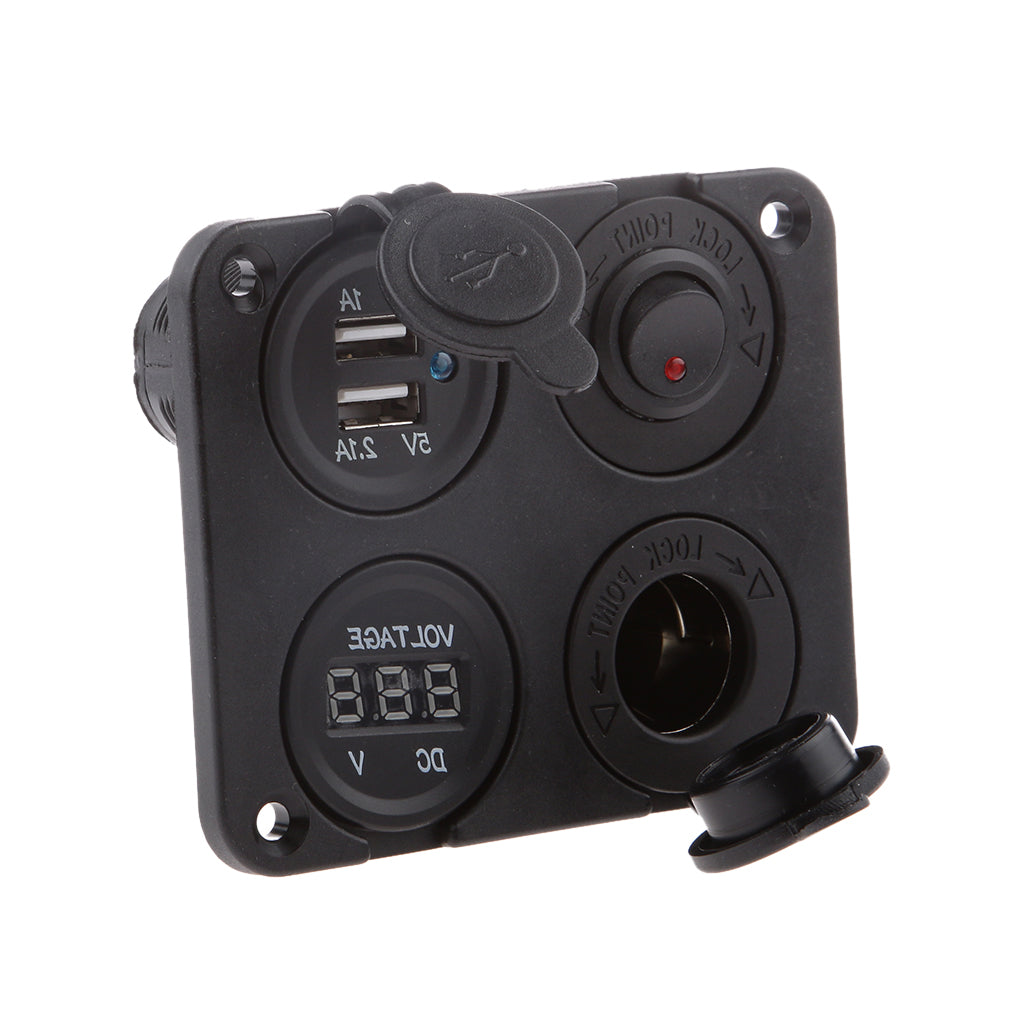 4 in 1, dual USB port charger , led voltmeter , Cigarette Lighter Socket and switch