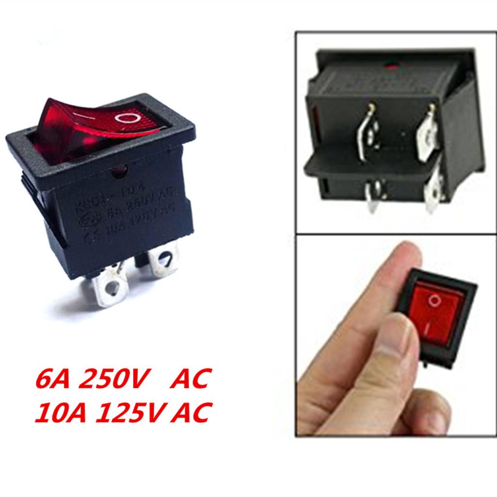 Mini Red Illuminated Light Solder Lug On/Off DPST Boat Rocker Switch 6A/250V 10A/125V AC Black