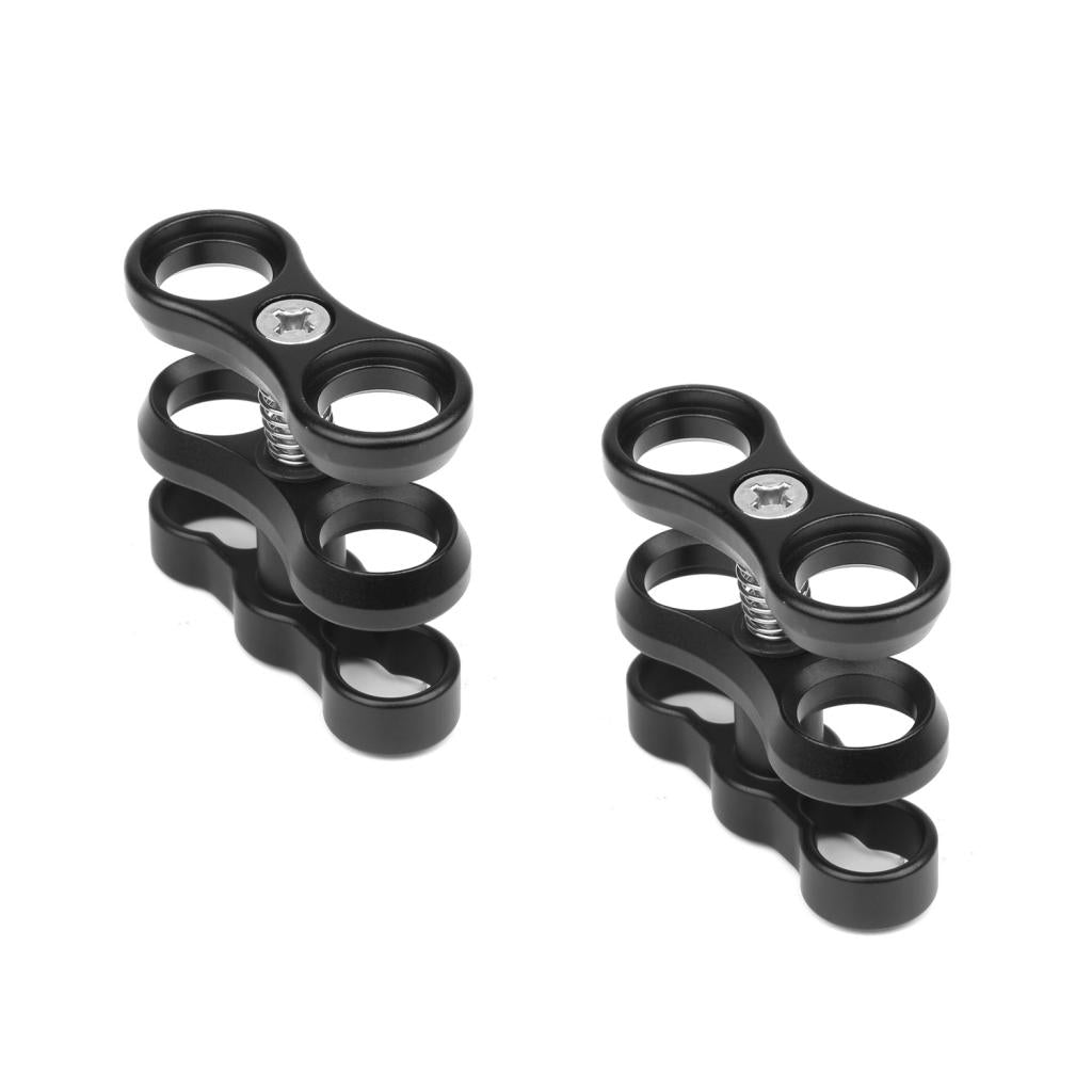 Standard clamp used to attach two arm, baase adapters and strobes together. ( Puts 2 ball together )