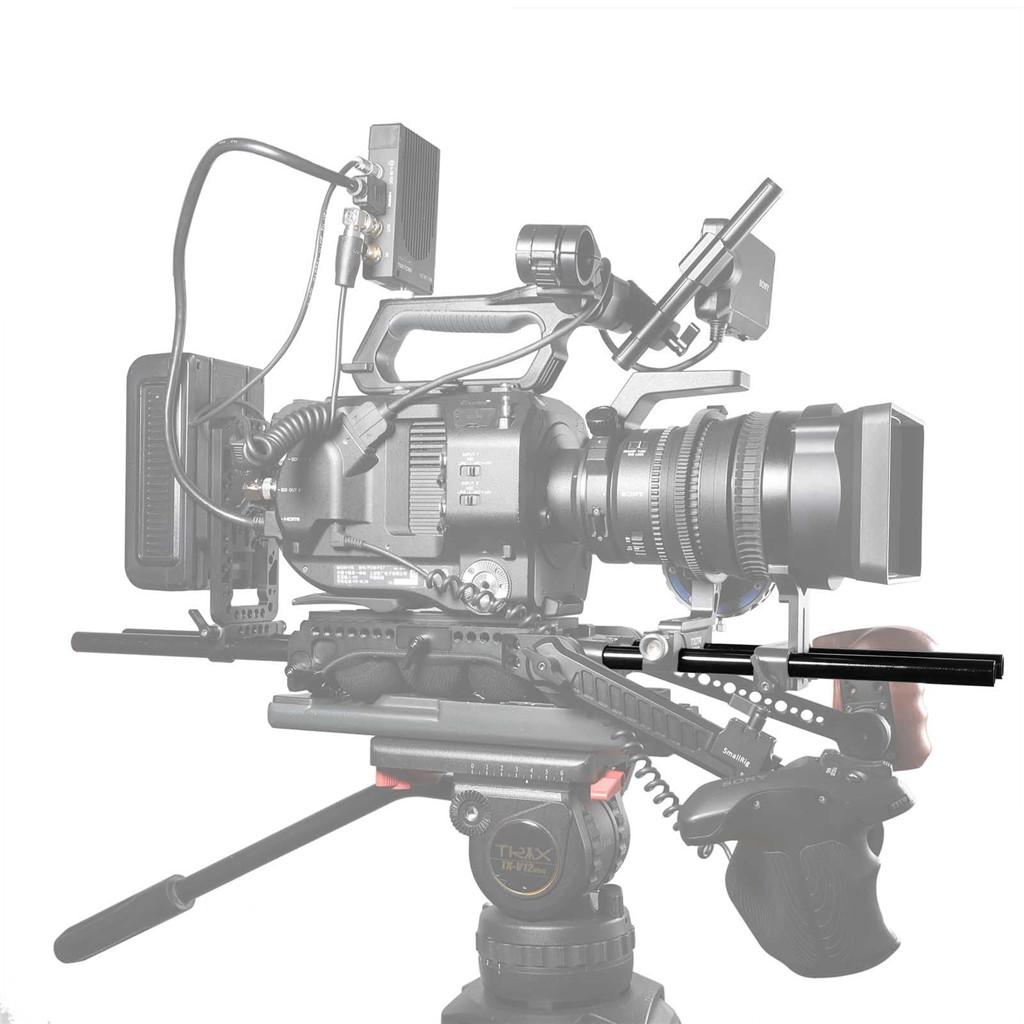 The standard 15mm rod is basic for supporting rail system, Handle Grip, matte box, magic arm, monitor, battery pack , battery adapter, Follow focus are mounted on the rods.
