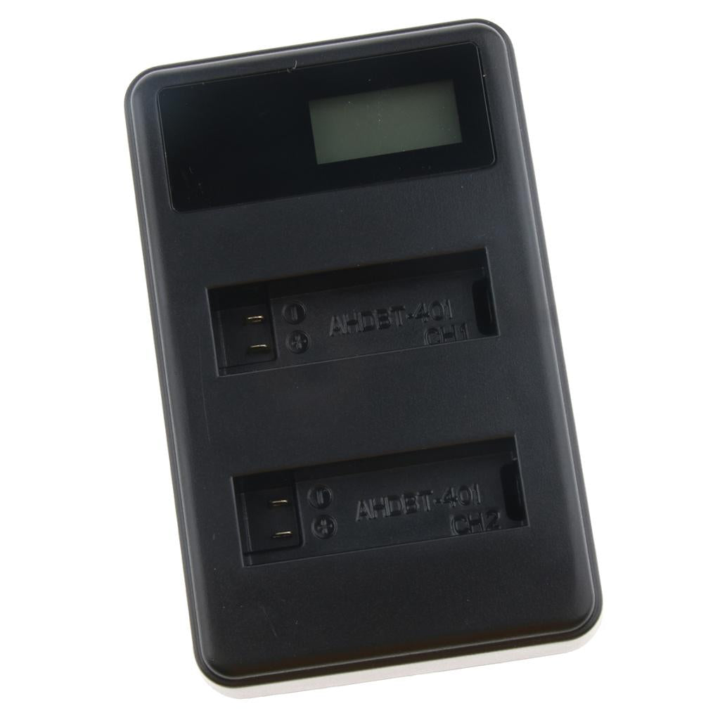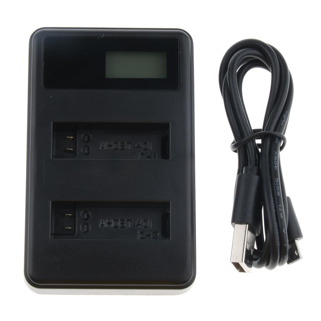 LCD Display USB Dual Ports Slot 2 Channels Battery Charger AHDBT-401 for GoPro Hero 4 Action Cameras