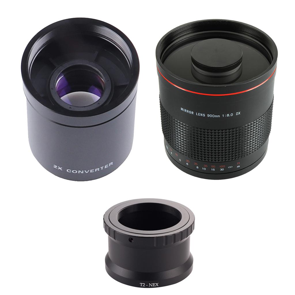 The 900mm f/8 Telephoto Lens includes a 2x teleconverter, which attaches to any T-mount (screw mount) lens, and effectively doubles the focal length of that lens, allowing the photographer to get much closer to the action.Works ONLY with compatible T-mount Lenses.