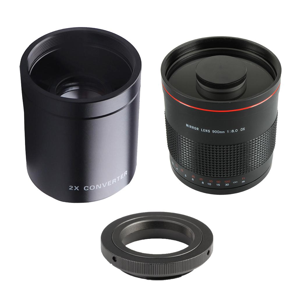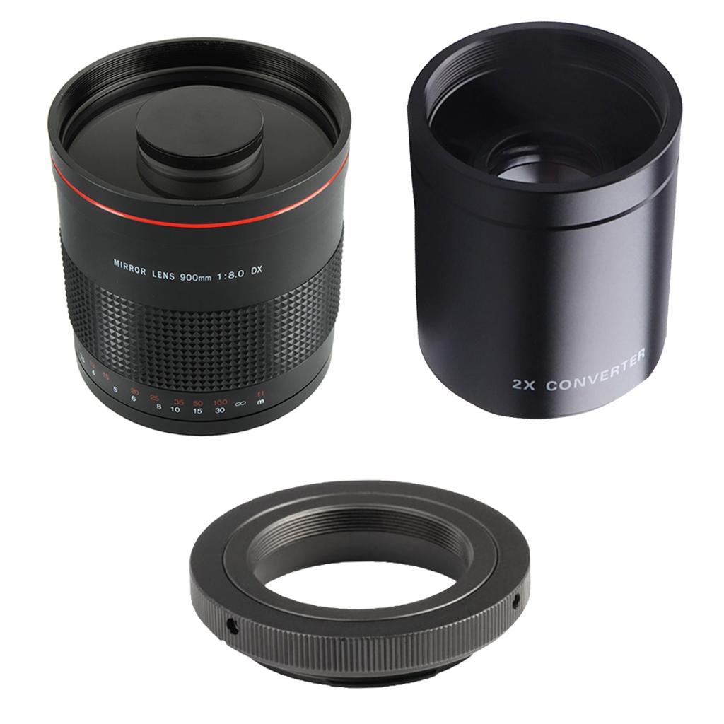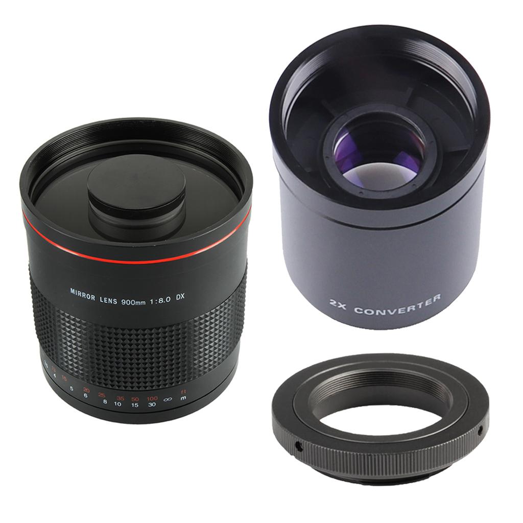 The 900mm f/8 Telephoto Lens includes a 2x teleconverter, which attaches to any T-mount (screw mount) lens, and effectively doubles the focal length of that lens, allowing the photographer to get much closer to the action.Works ONLY with compatible T-mount Lenses.