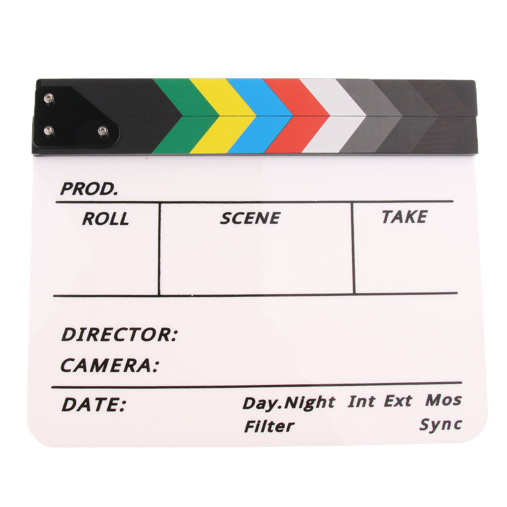 Clapperboard TV Film Movie Clapboard White Board with Colorful Stripe Slate