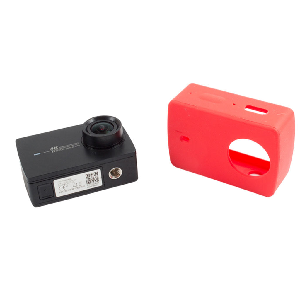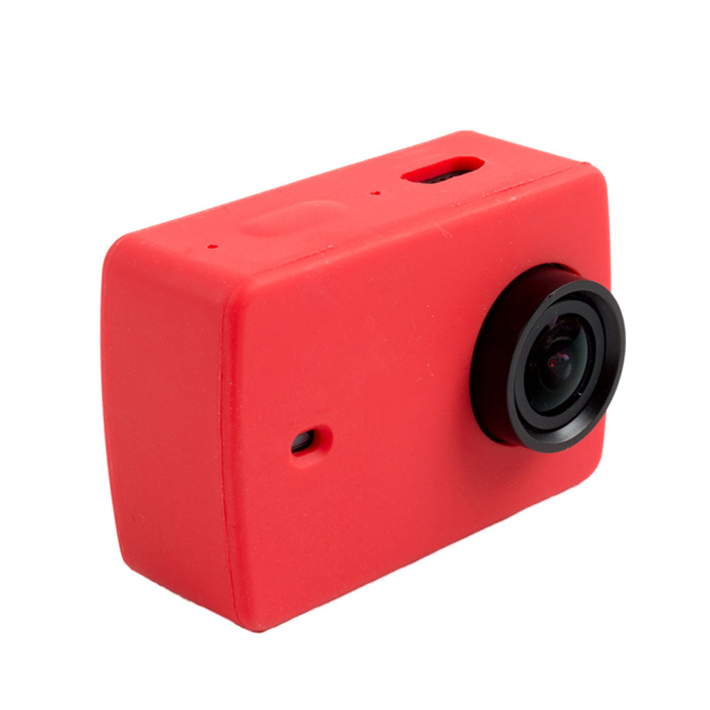 Silicone Case Cover Soft Skin For Xiaomi Yi 2 Sports Camera+Lens Cap Red