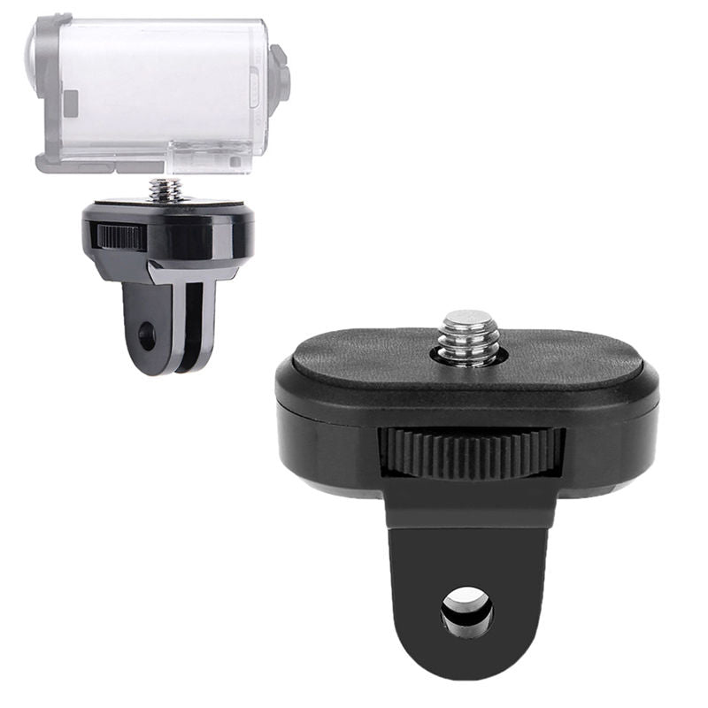 This 1/4" male thread tripod adapter allows to mount almost every available on the market camera with a tripod interface to GoPro mounts