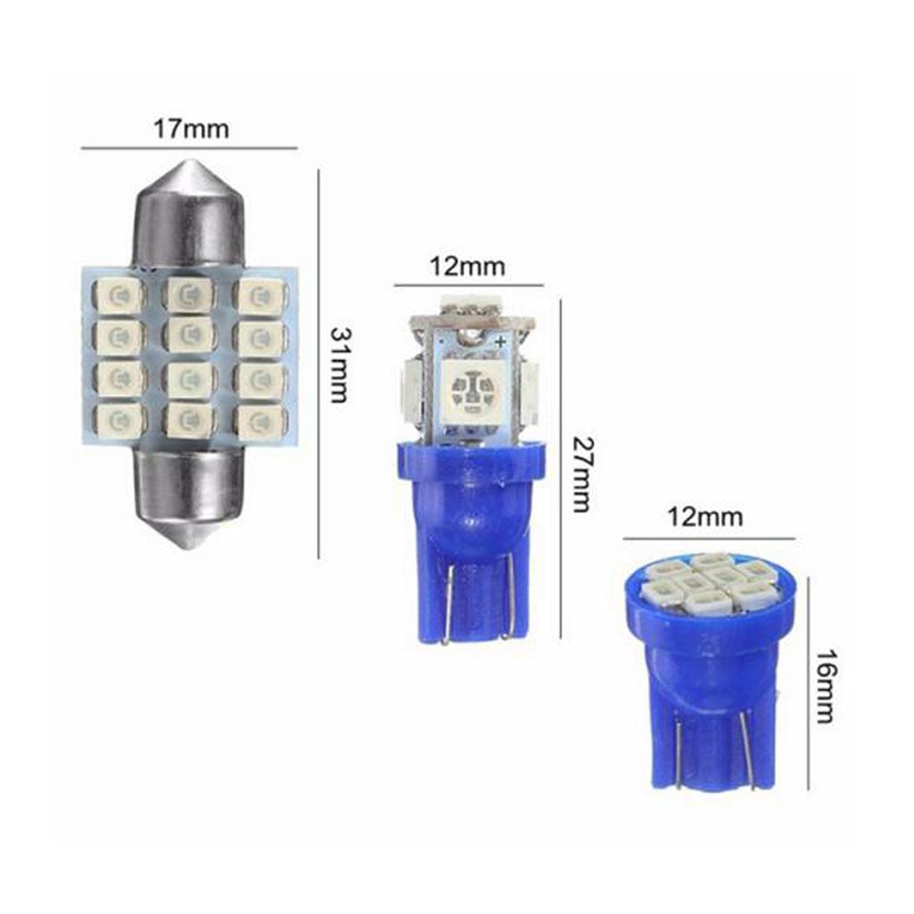 11PCS Universal Blue LED Lights Interior T10 & 31mm Map Dome Lights Lamps