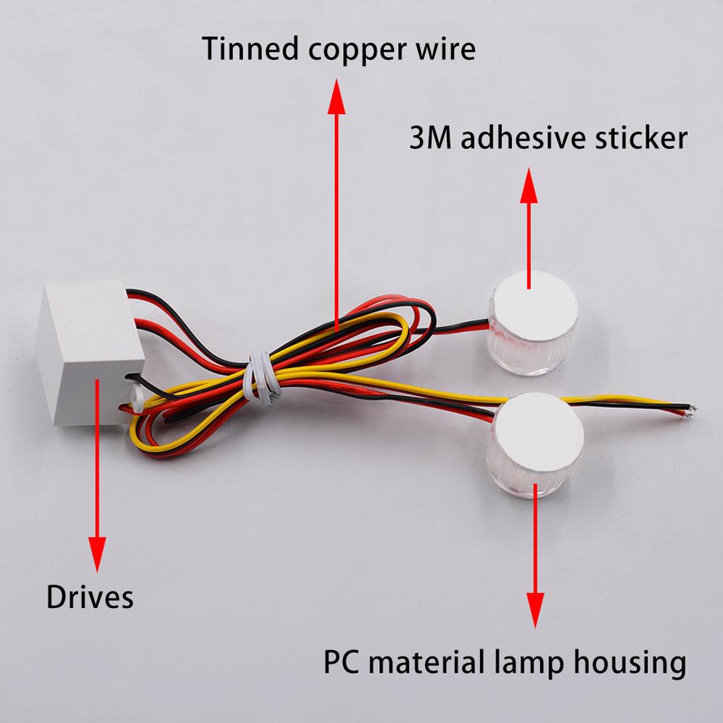 Can be installed At any position in electric car, motorcycle, atv, cars, etc. as running lights, fog lights, brake lights, warning lights