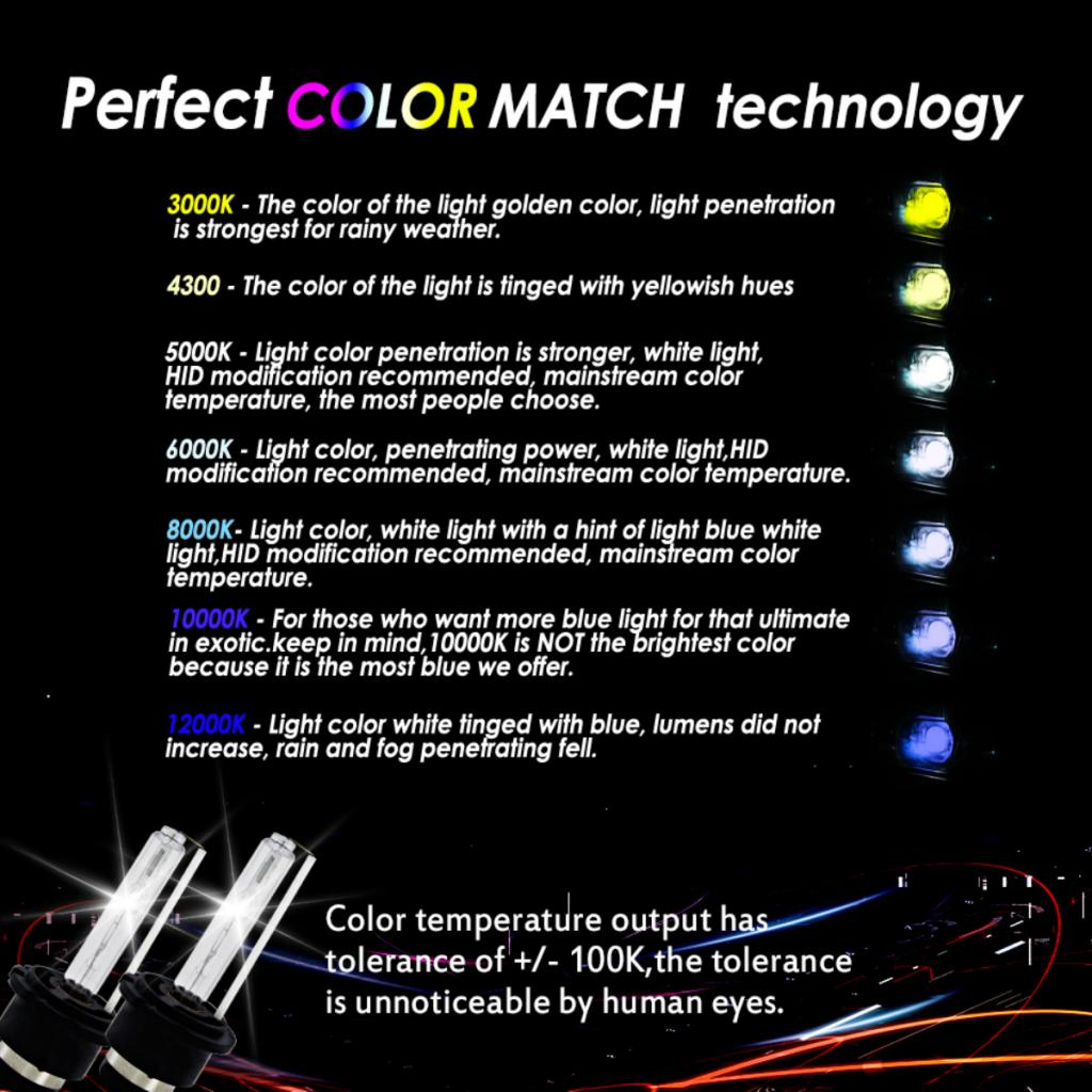 12000K: the bluish white light color, lumen not improved, rain and fog weather penetration declined, but the light color is more beautiful.
