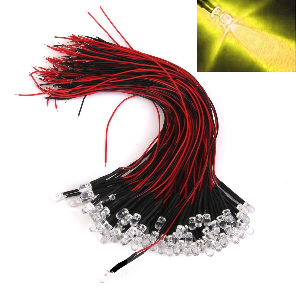20 Pieces 20cm Pre Wired 5mm Emitting Diode Bright LED Lamp Light Yellow