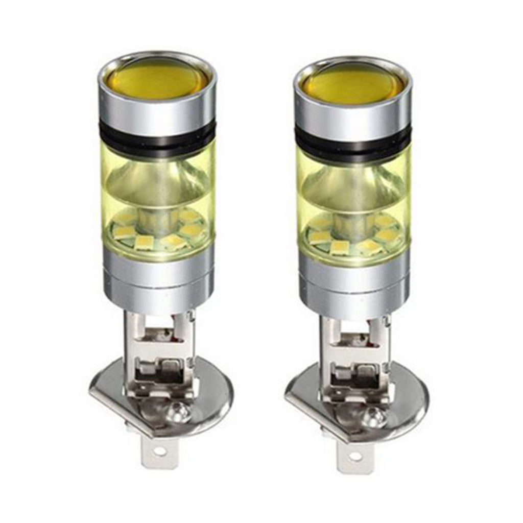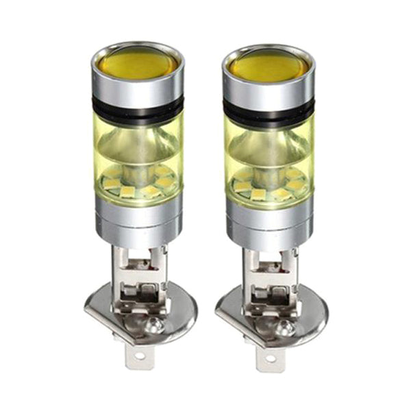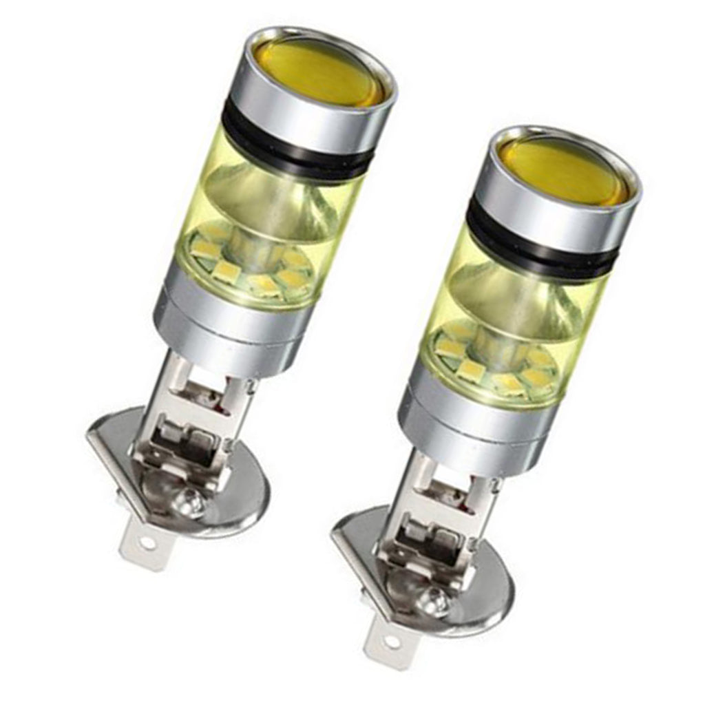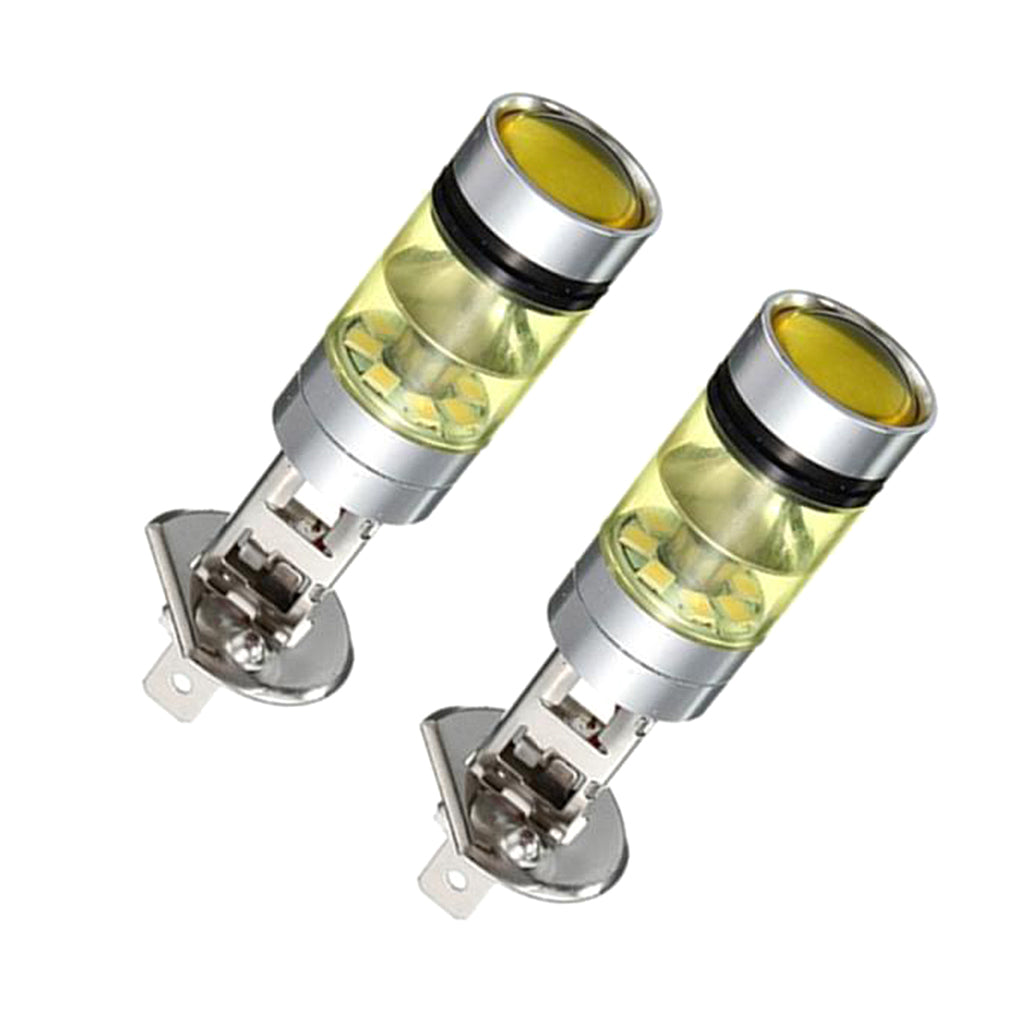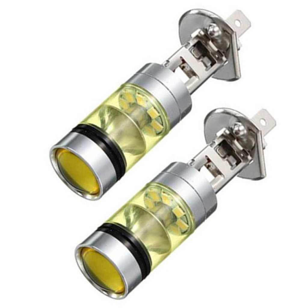 2pcs H1 100W Fog Light Yellow LED DRL Projector Lamp Bulb for Car Vehicle