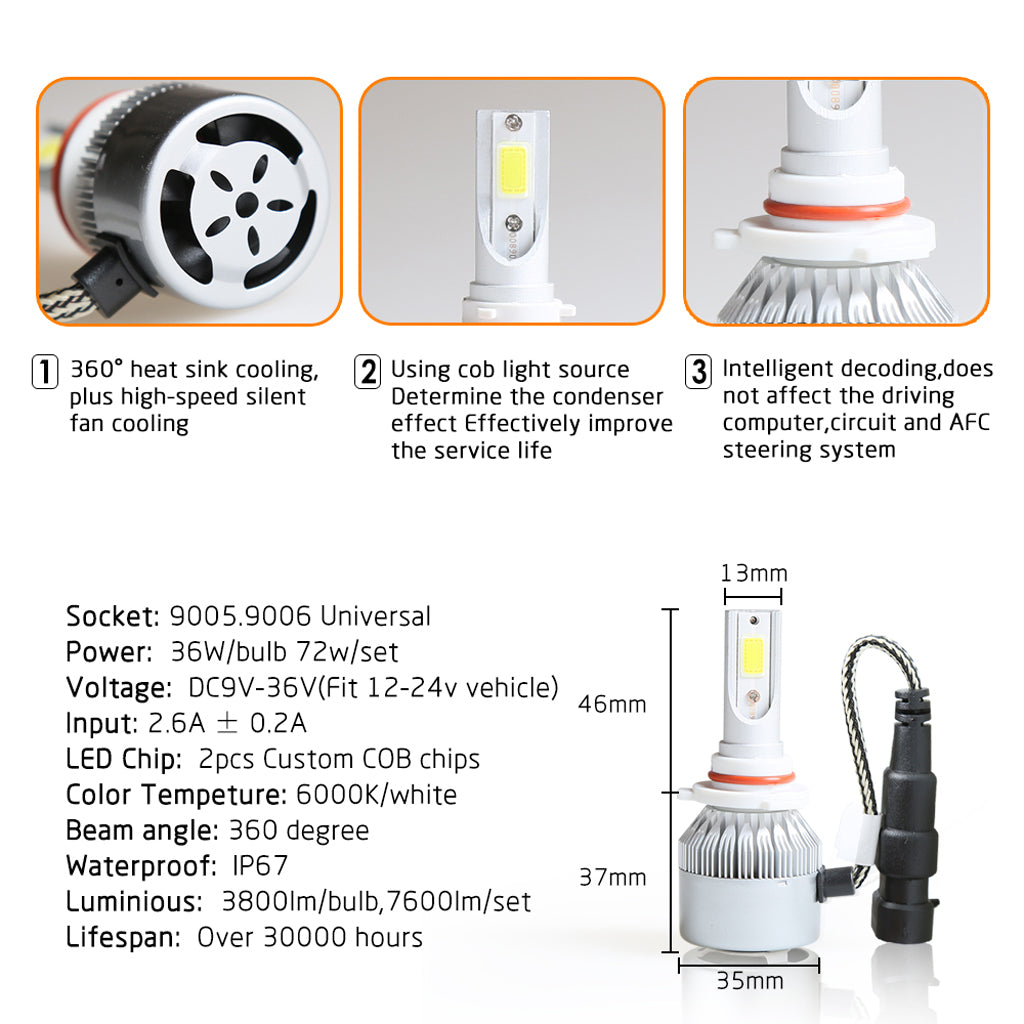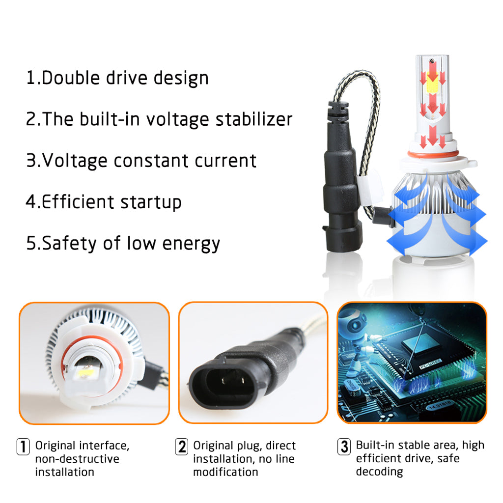 Convenience: no need dimming, LED car headlights intergrated plug and play. No modification, one-stop alterlative to halogen lamps.
