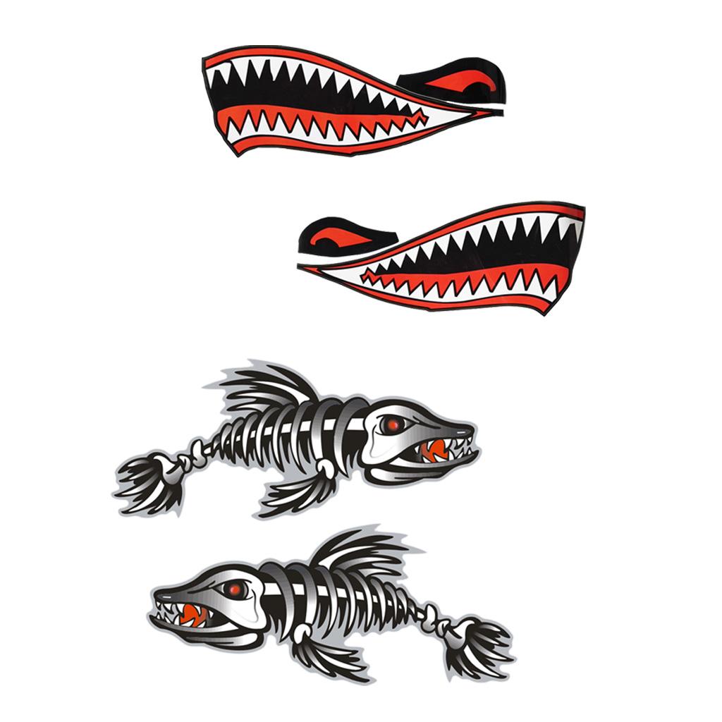 4 Pieces Skeleton Fish Bones with Shark Mouth Teeth Boat Canoe Kayak Decals