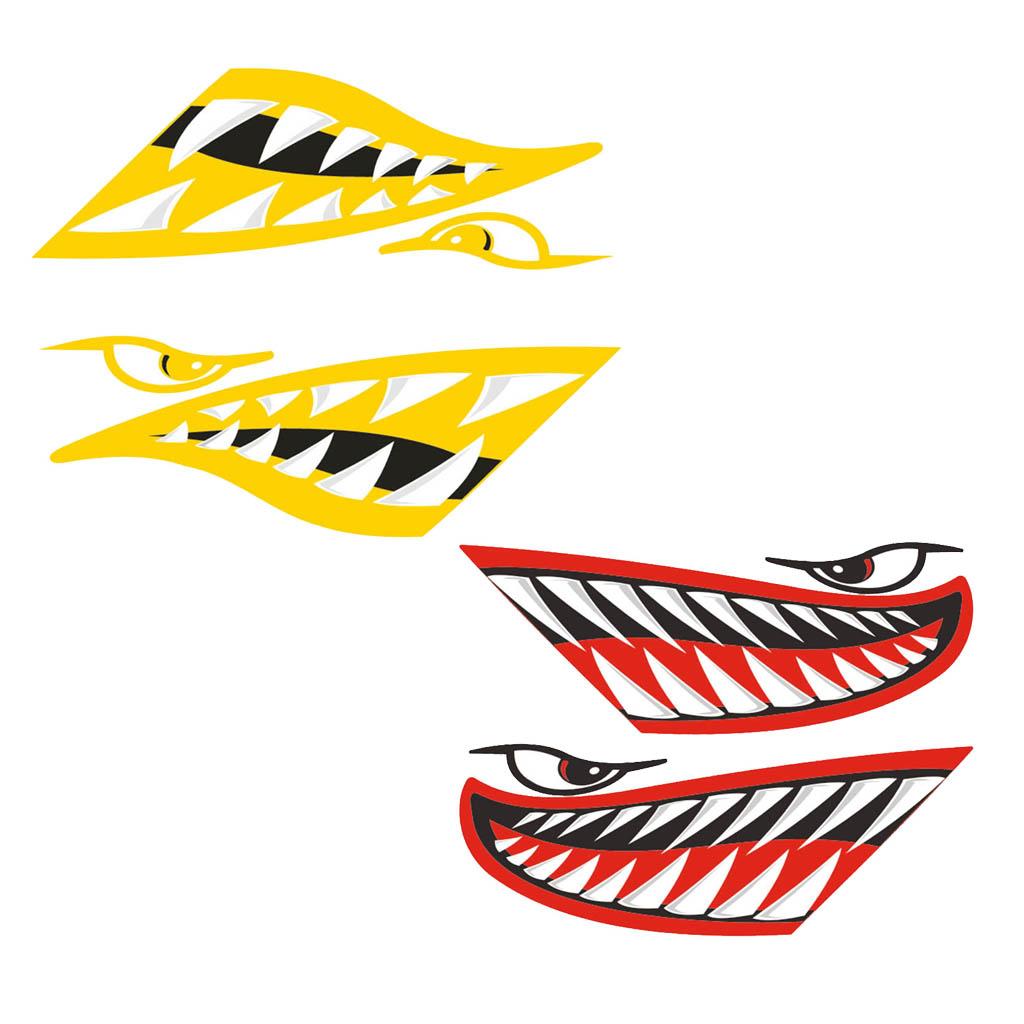 4 Pieces red + yellow high quality vinyl large shark teeth mouth decal stickers