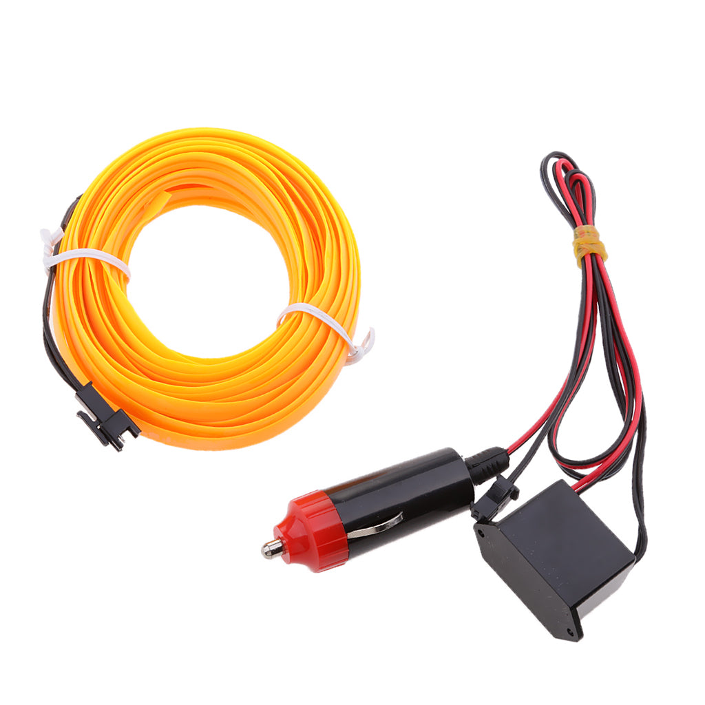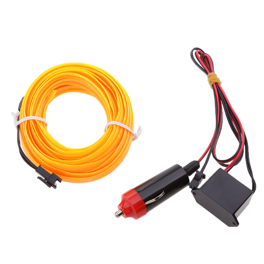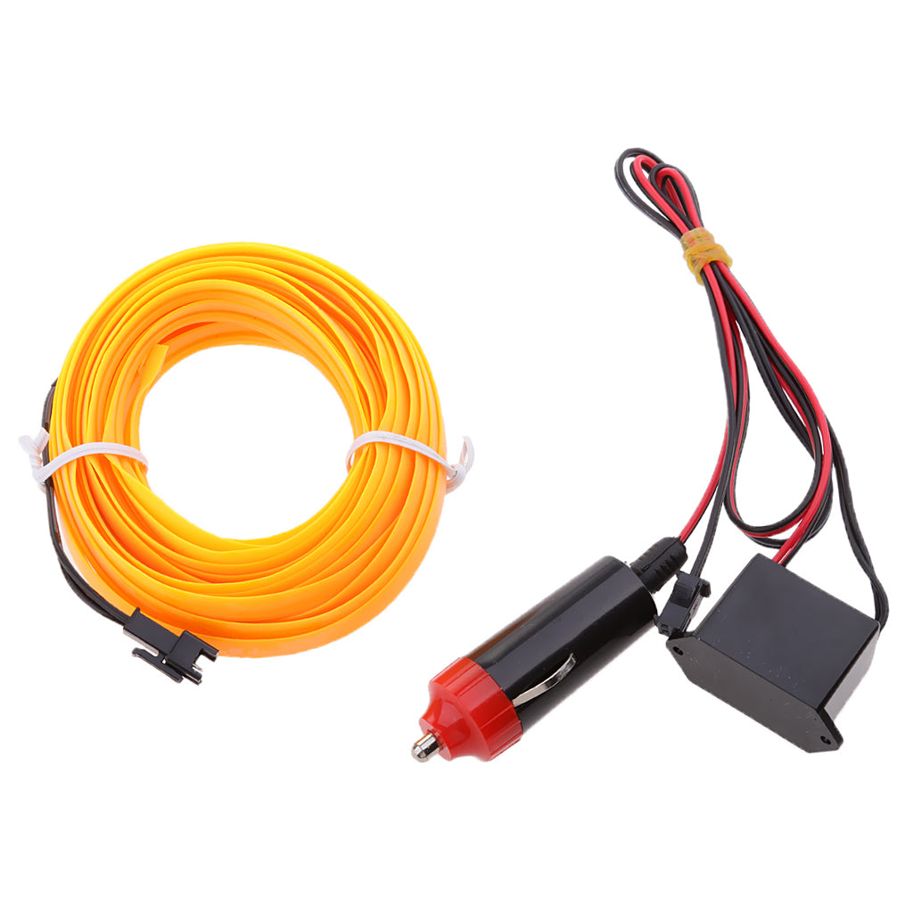 5M Car Neon Cold Light EL Wire Strip Tube with 12V Drive Inverter Yellow