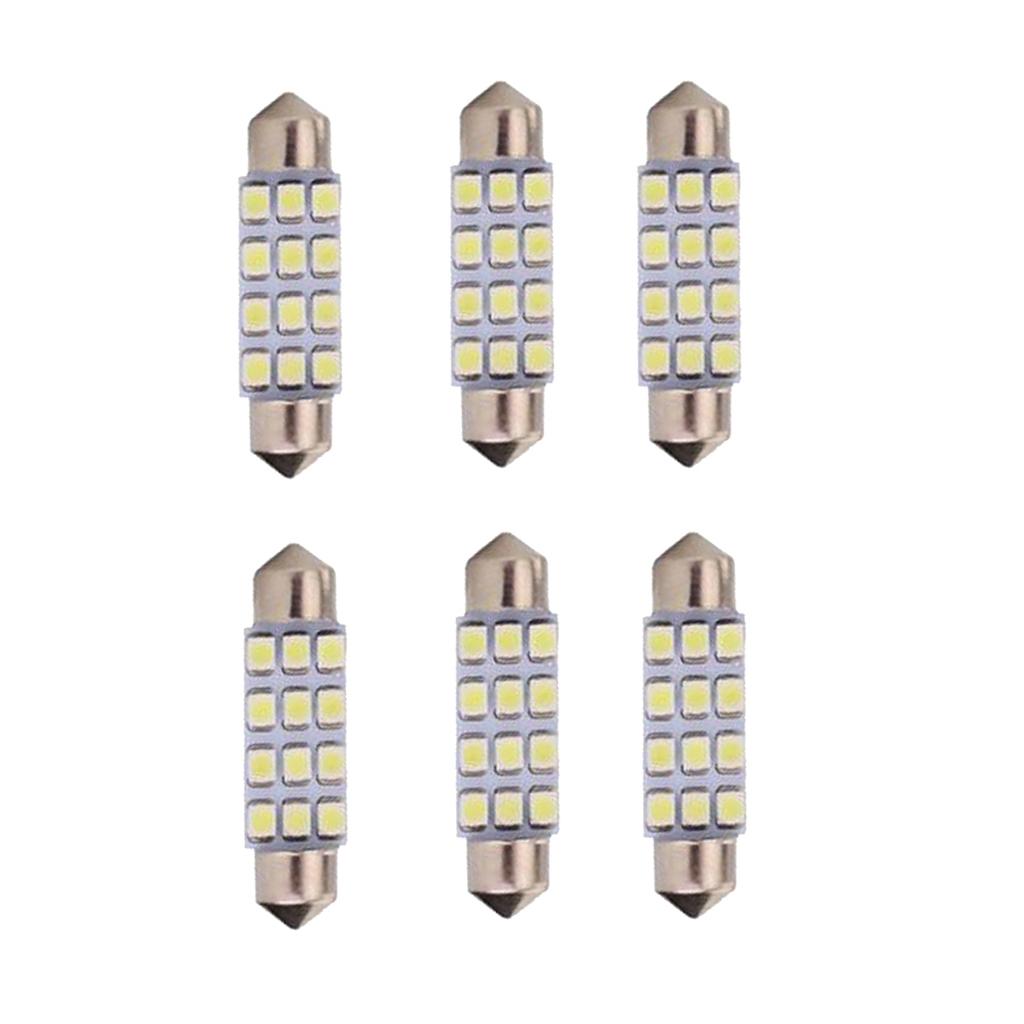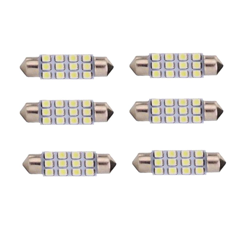 6 Pieces 6000K White 42MM 12SMD 3528 Festoon Car LED Dome Map Interior Bulbs