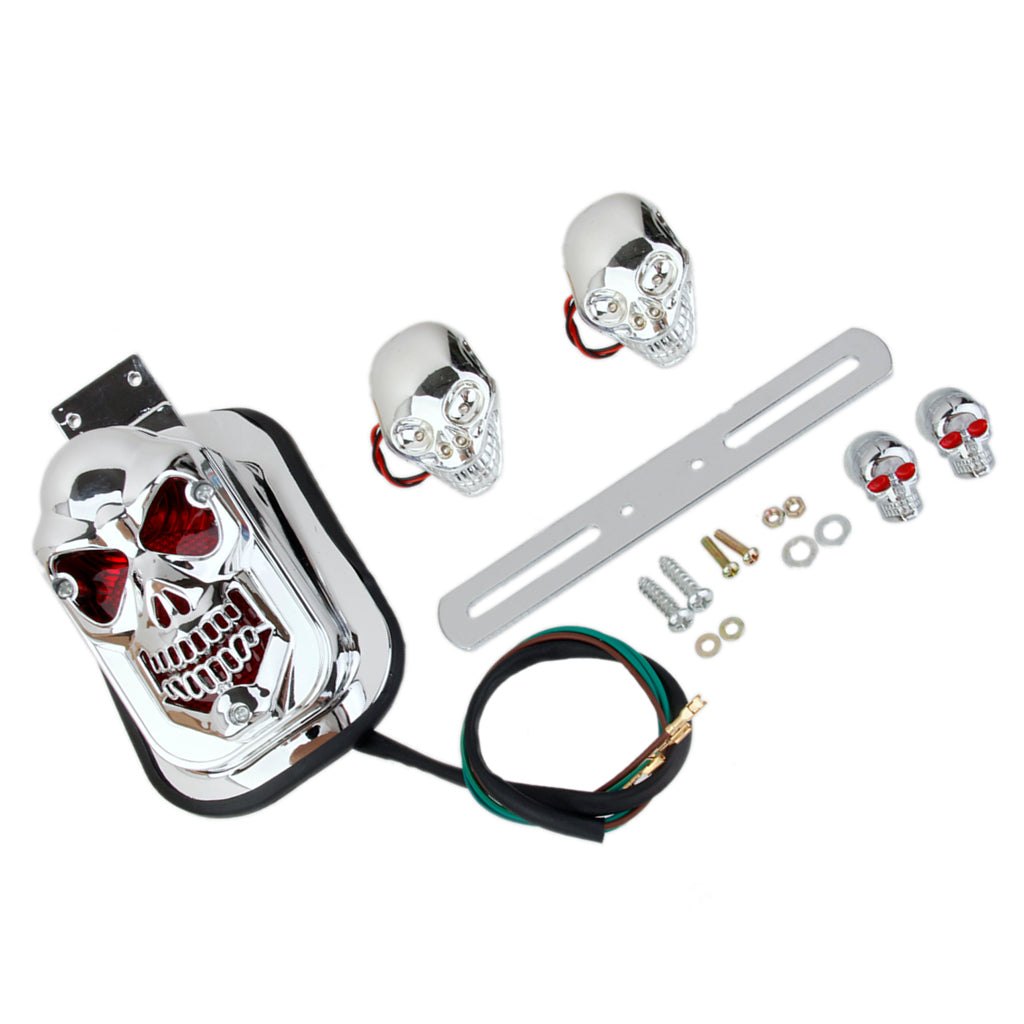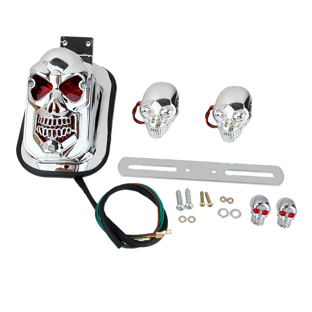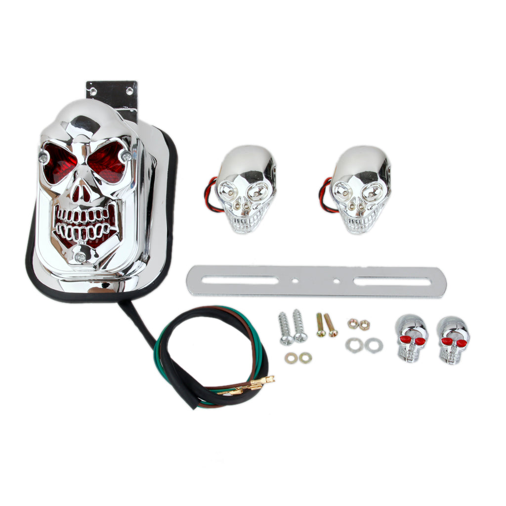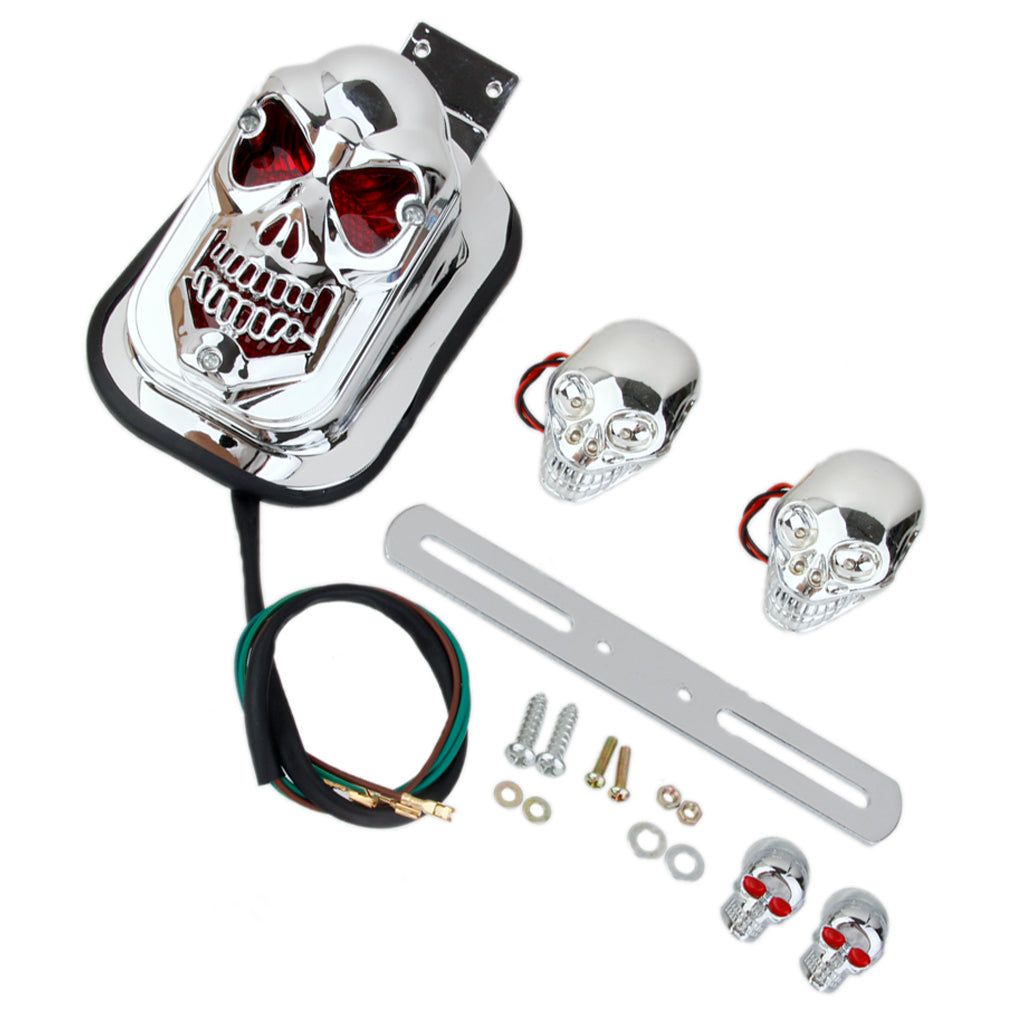 Motorcycle Skull LED Rear Tail Light Side Mount Plate for Harley Yamaha DIY