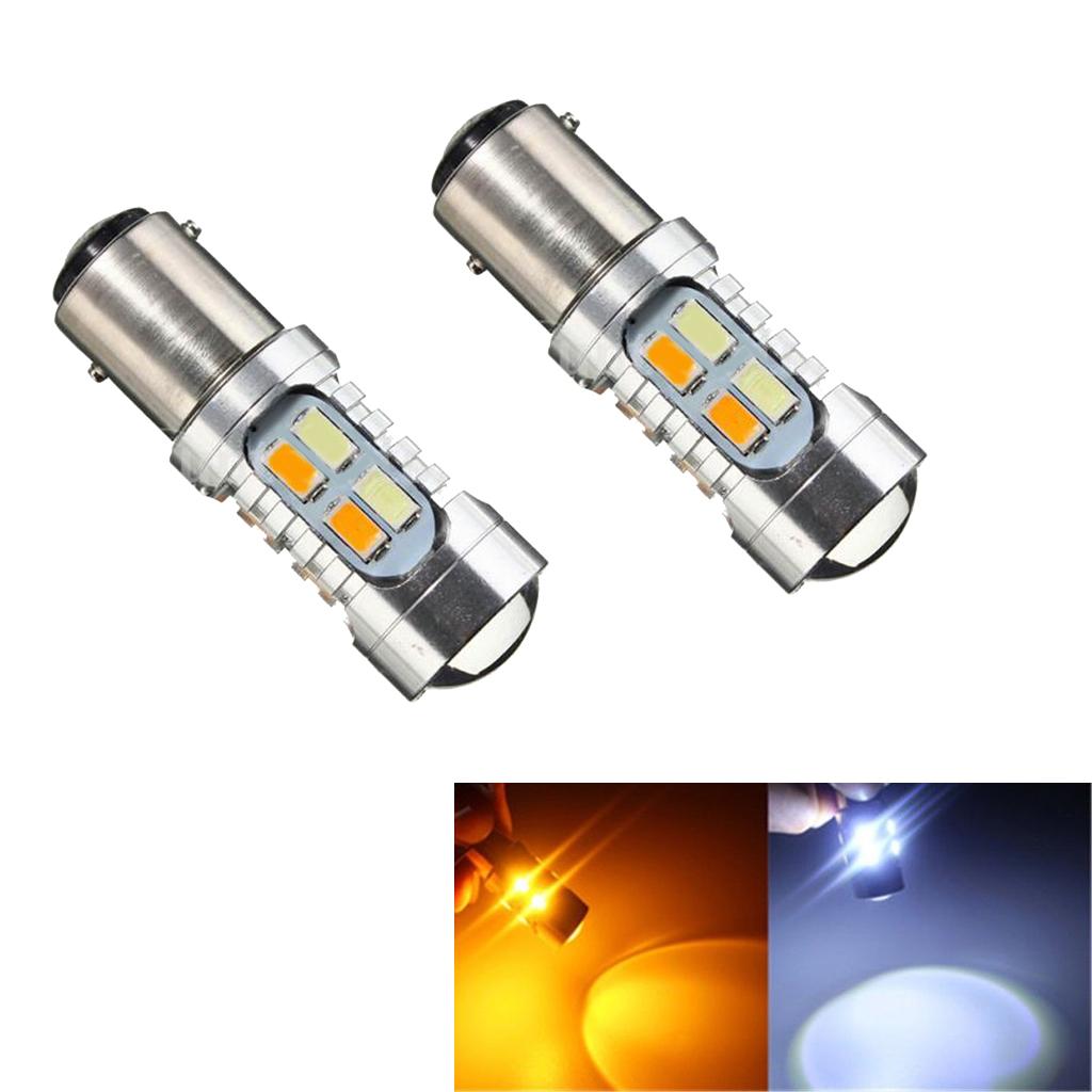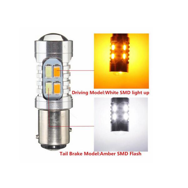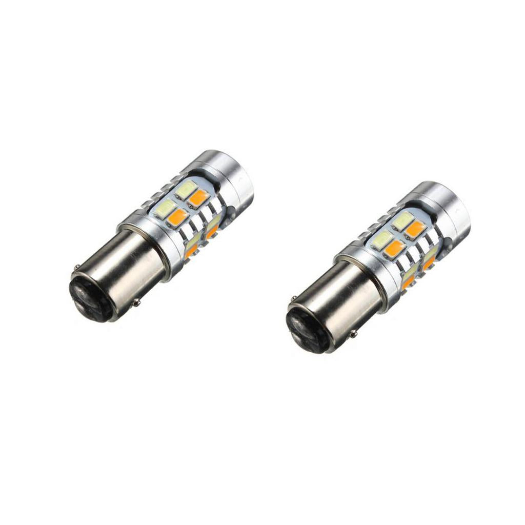 Pair 1157 BAY15D Dual Color 20 SMD 5730 LED Tail Brake Light Bulbs 12V DC