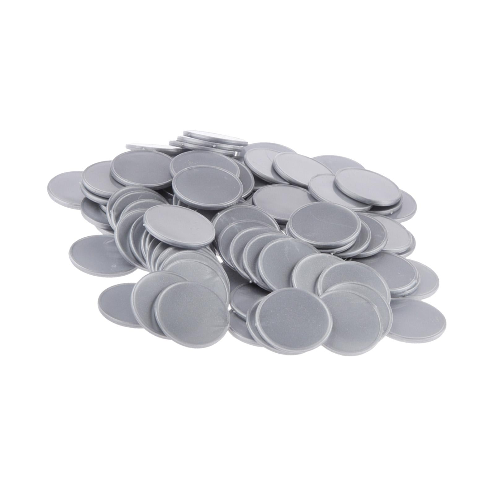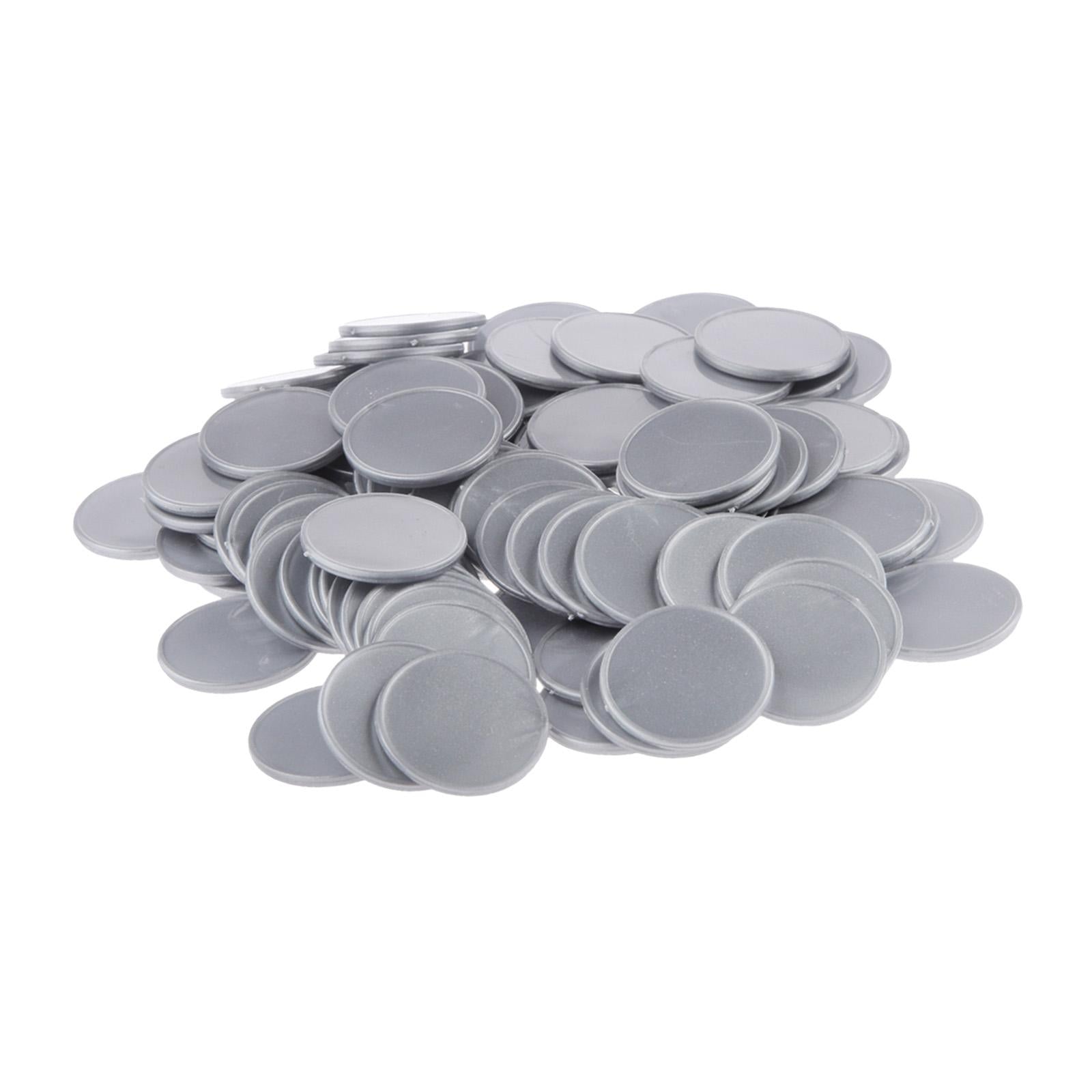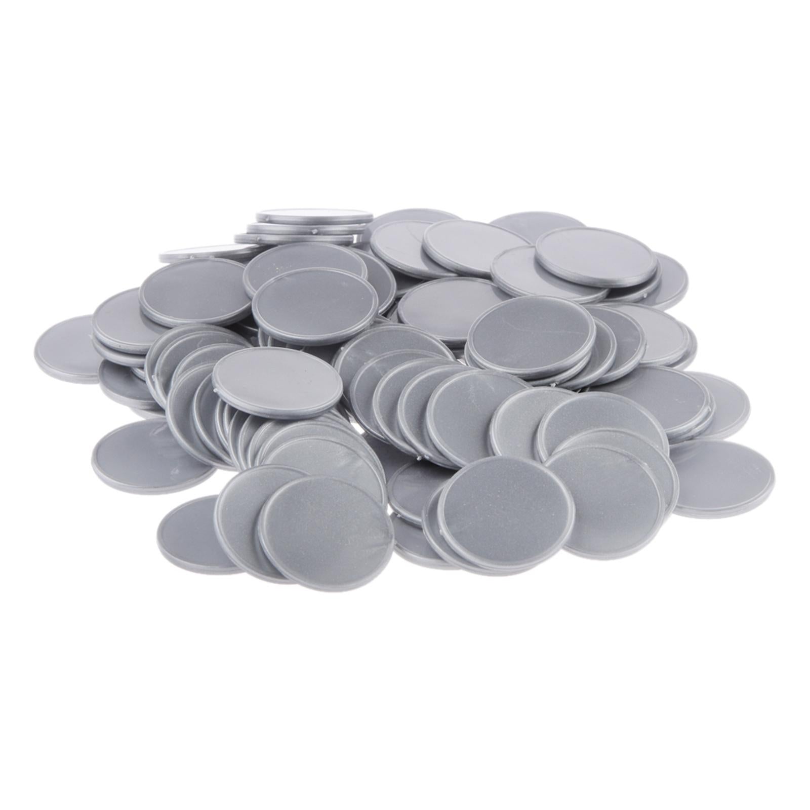 100x 25MM Plastic Casino Poker Chips Bingo Markers Token Fun Toy Gift Silver