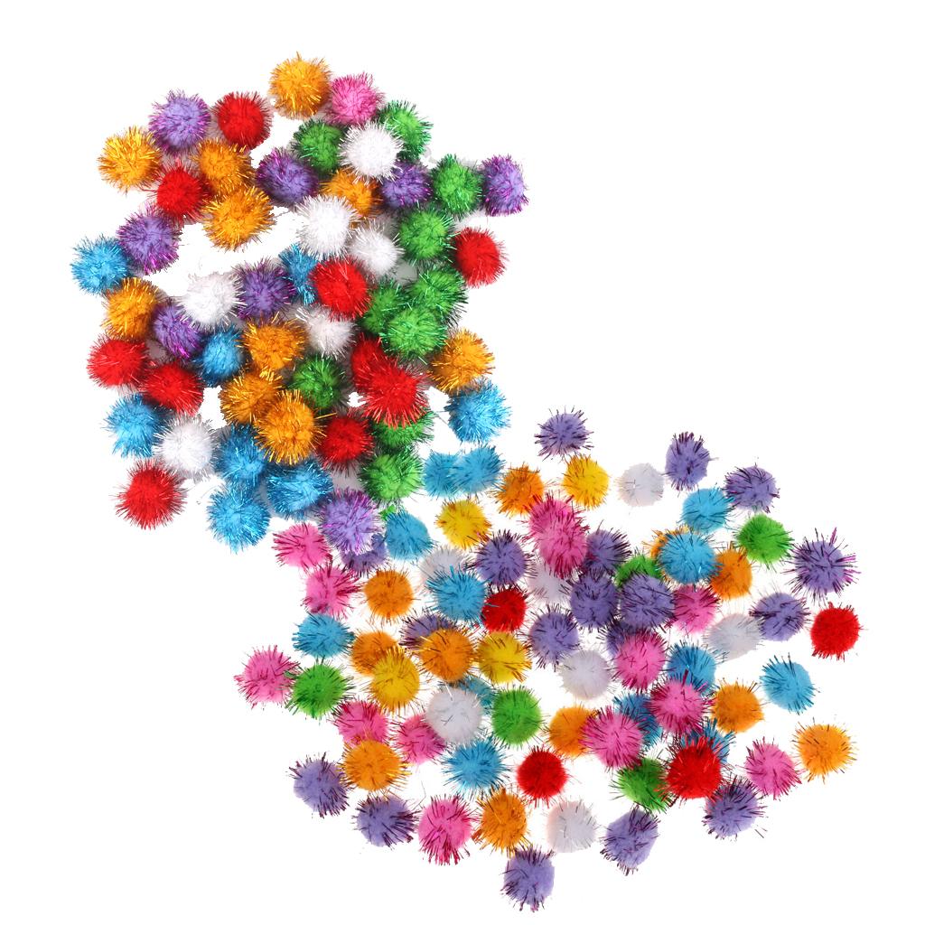 Colorful Pompoms Balls with Sprayed Glitzy Tinsel