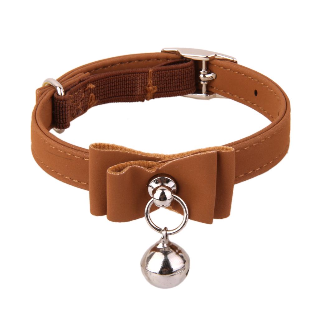Adjustable Pet Kitten Cat Puppy Safety Collar Bell Buckle Neck Strap Brown