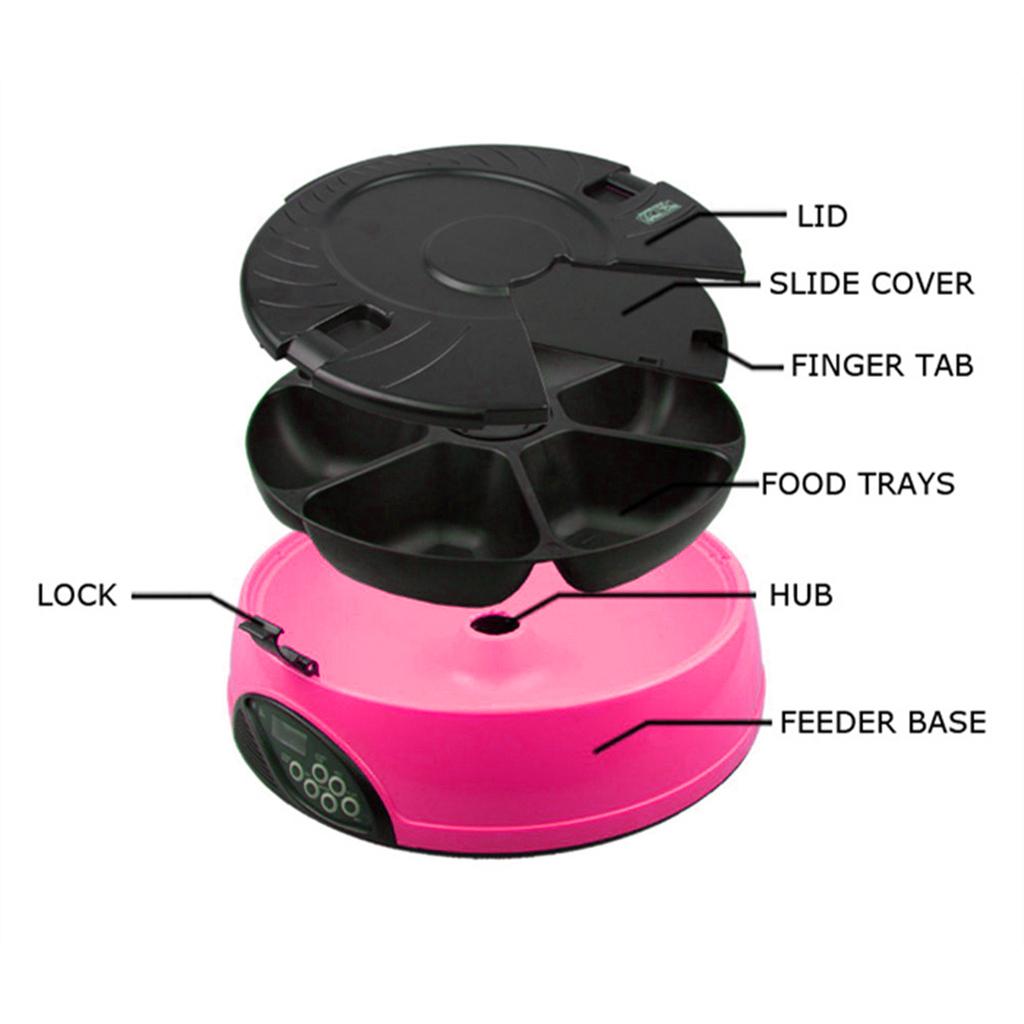 Automatic LCD Display Pet Timing Food Dispenser Auto Feeder 6-Meal Pink