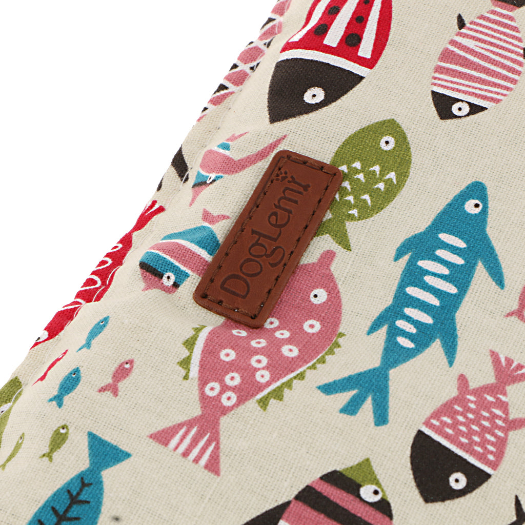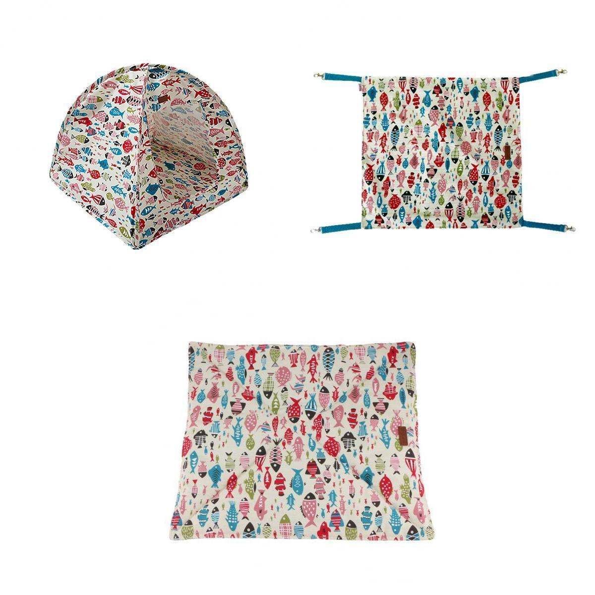 Lovely blue fish print pet cat house, cat hammock and cat bed mat.