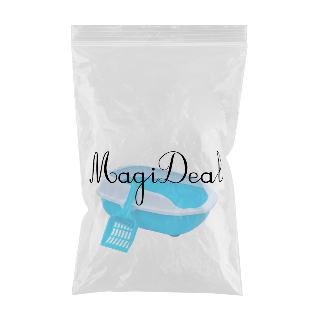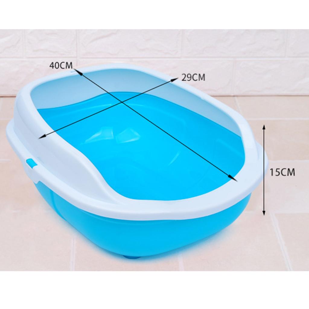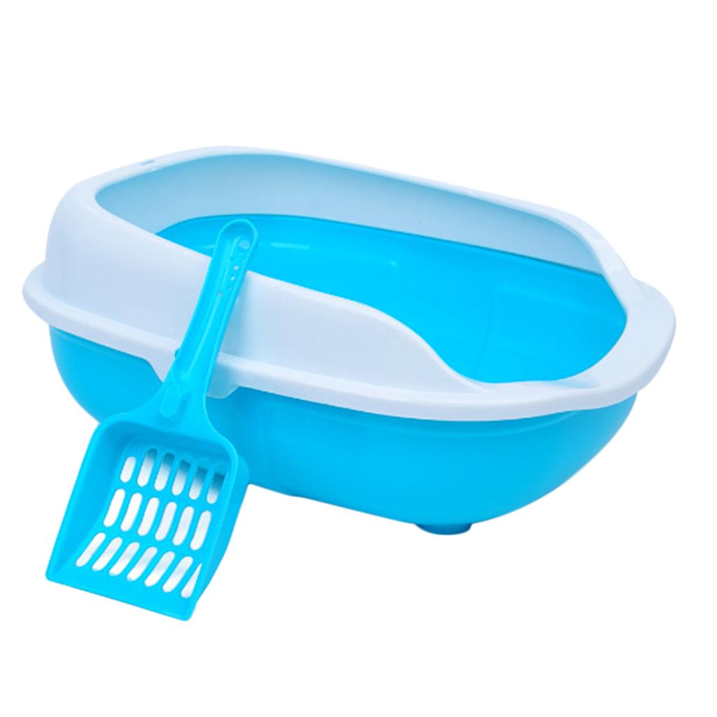Colorful Cat Litter Box Tray Anti Splash Toilet Fenced Pan with Shovel Blue