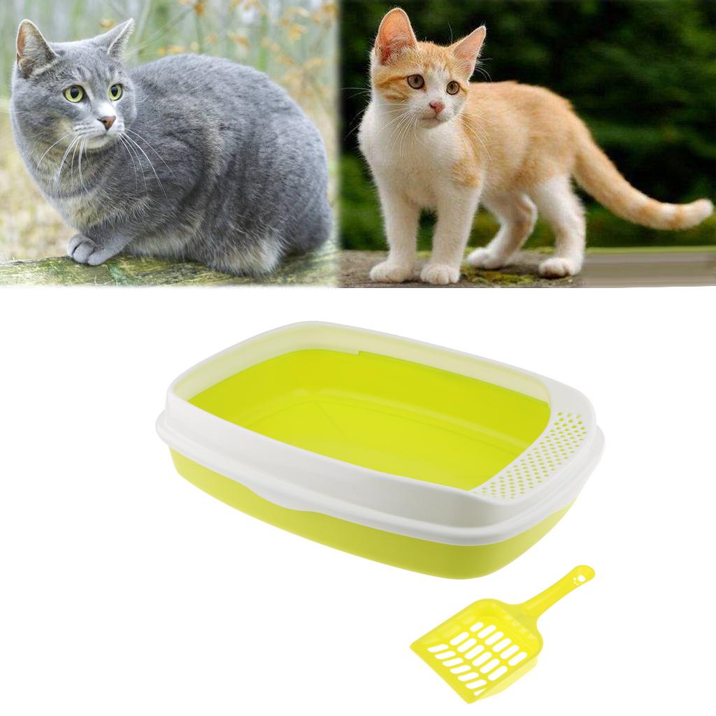 Colorful Cat Litter Box Tray Anti Splash Toilet Fenced Pan with Shovel Green