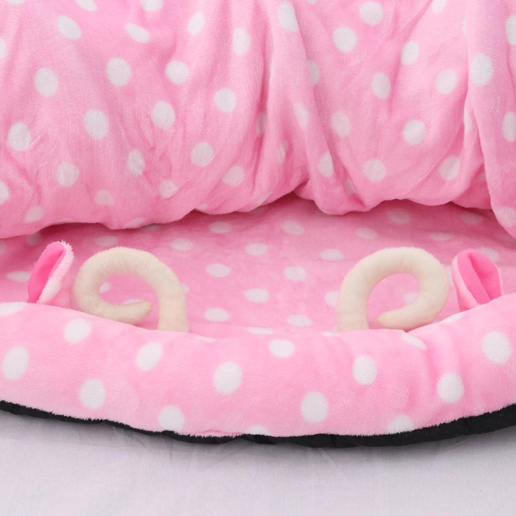 The bed and tunnel is made out of soft lining that crinkles which will keep your cat entertained.