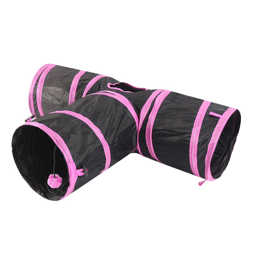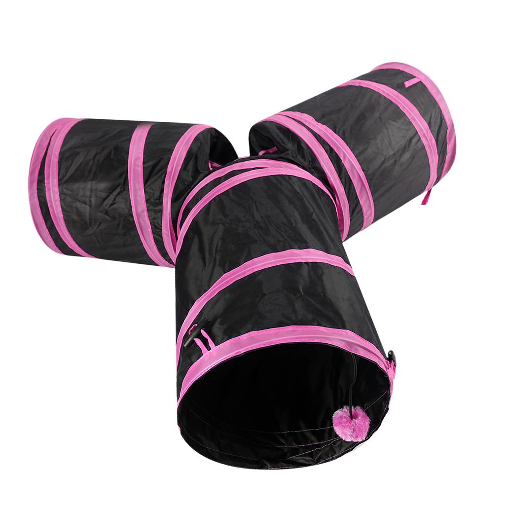 Foldable Kitty Three-way Tent Cat Tunnel Pet Tube Toy for Kitten Fun Pink