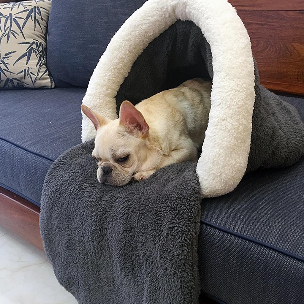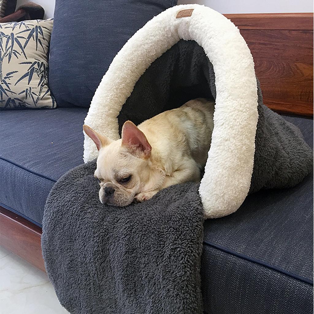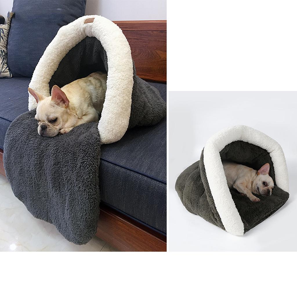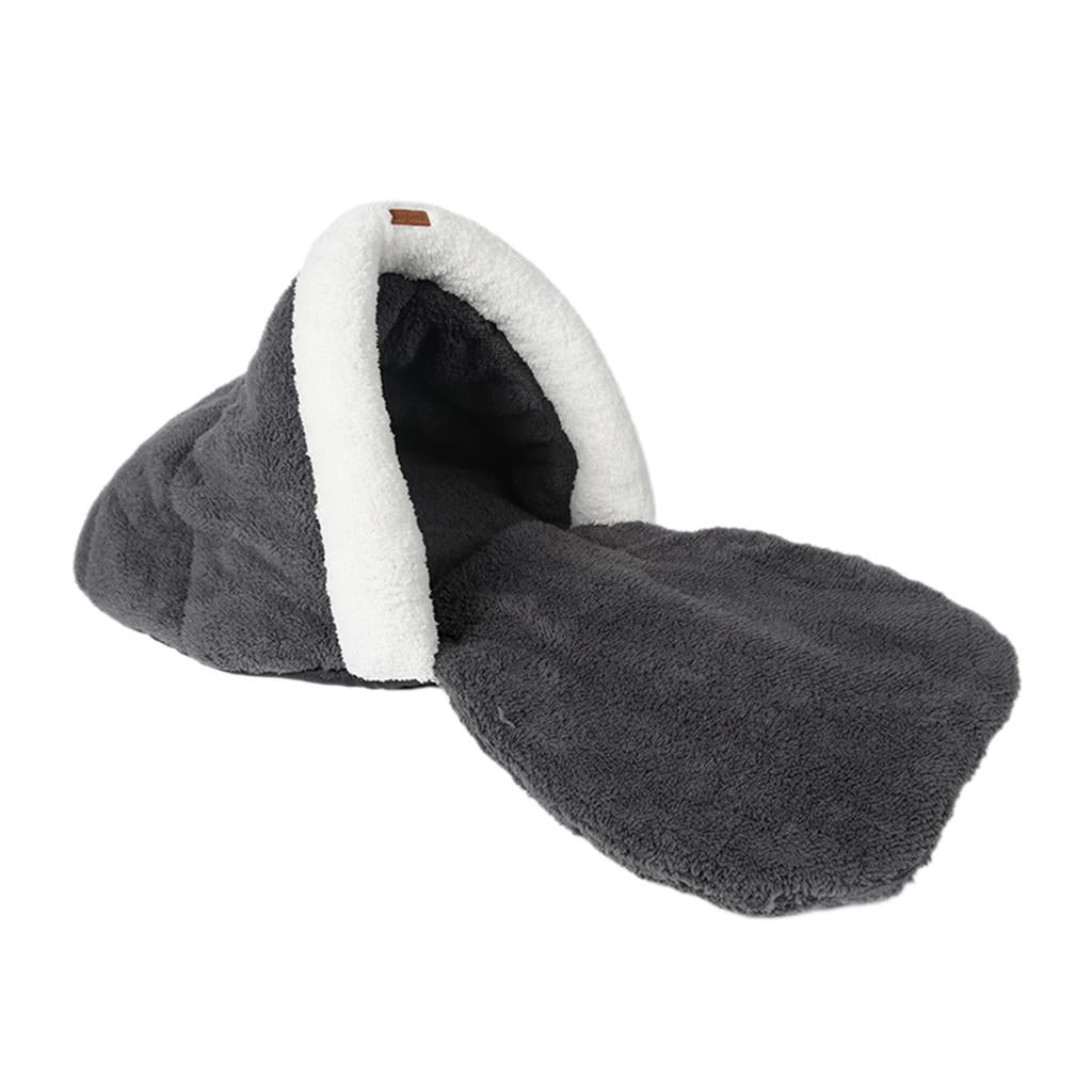 Pet Cat Dog Rest Sleep Bed Soft Warm Sleeping Bag Cave House Mat Pad Removable Cushion Bag Pet Supplies Dark Grey L