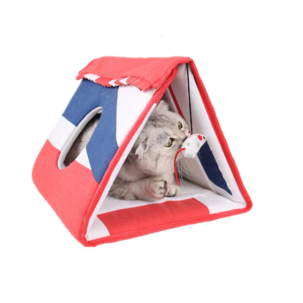 Pet Cat Dog Triangle Scratcher Kitten Tunnel Playing Toy Scratch Pad Mat #2